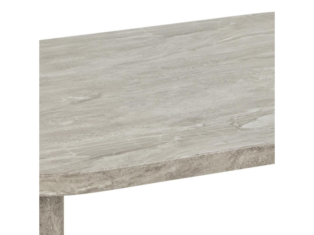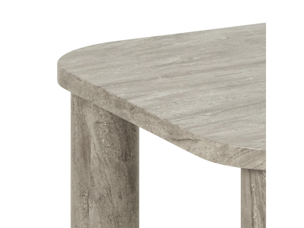 Konferenčný stolík Solano je navrhnutý ako výrazný stredobod obývačky, ktorý kombinuje robustné proporcie s rafinovaným vzhľadom siveho mramoru River. Jeho obdĺžniková doska so zaoblenými rohmi a výrazné okrúhle nohy dodávajú nábytku sochársky charakter a pôsobivú prítomnosť v priestore.