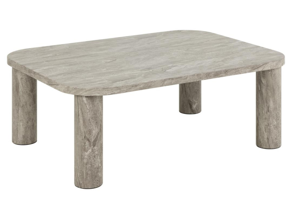 Sivý konferenčný stolík Solano je vhodný doplnok do moderného interiéru. Vďaka povrchu imitujúcemu riečny mramor dodáva priestoru nádych luxusu. Obdĺžnikový tvar zabezpečuje univerzálne využitie v obývacej izbe.