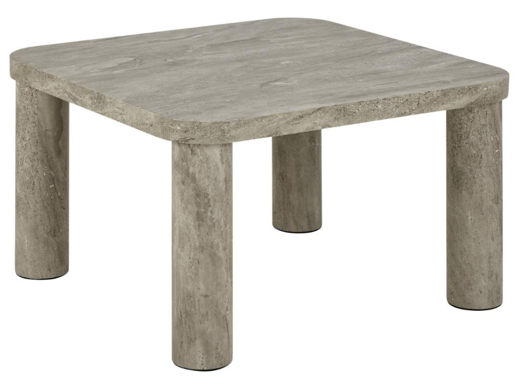 Štvorcový konferenčný stolík Solano v prevedení sivého mramoru River je navrhnutý ako kompaktný a štýlový doplnok do moderných interiérov. Jeho čisté línie, zaoblené rohy a výrazné okrúhle nohy vytvárajú sochársky efekt, ktorý dodáva miestnosti vizuálny záujem a eleganciu.