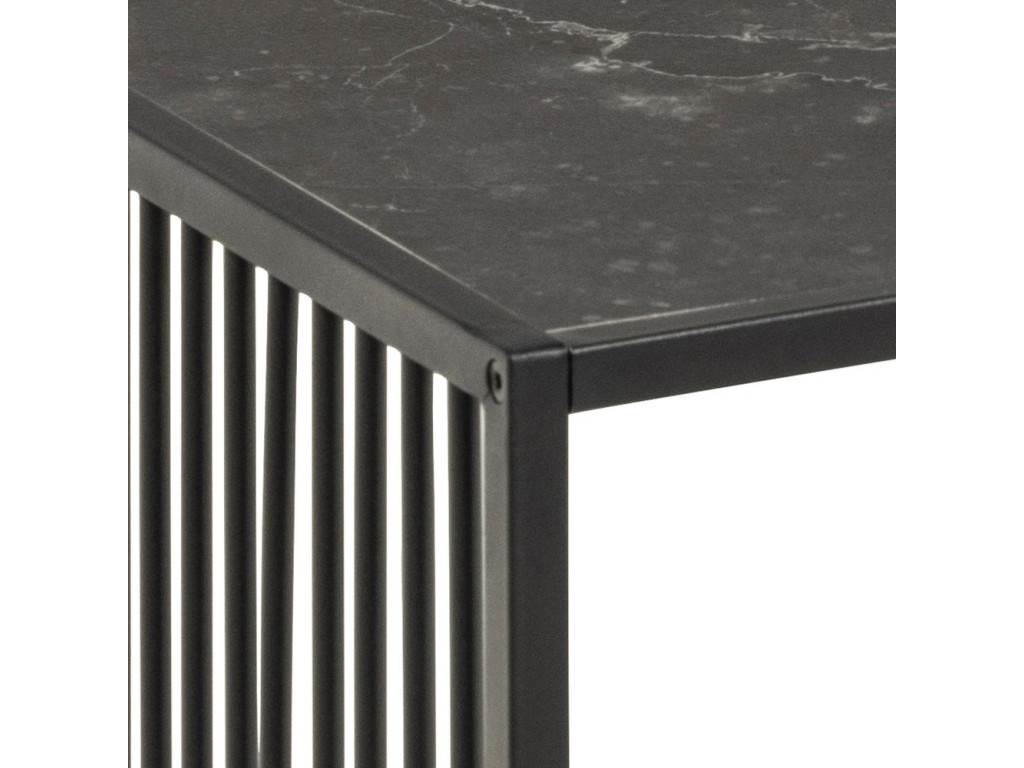 Kolekcia Strington je stelesnením súčasného dizajnu, ktorý prepája grafickú čistotu a zmysel pre detail. Každý kus je navrhnutý tak, aby zaujal z každého uhla – či už ide o štíhle vertikálne drôty, zaoblené kovové lamely alebo povrchy s čiernym mramorovým vzhľadom a efektom dymového skla. Nábytok v kolekcii pôsobí otvorene, no zároveň vyžaruje pevnosť vďaka konštrukcii z čiernej ocele s hrubým práškovým nástrekom. Kolekcia si pohráva s kontrastmi – tvrdé a jemné, plné a prázdne, matné a lesklé – a vytvára tak výrazný, ale harmonický dizajnový rukopis.
