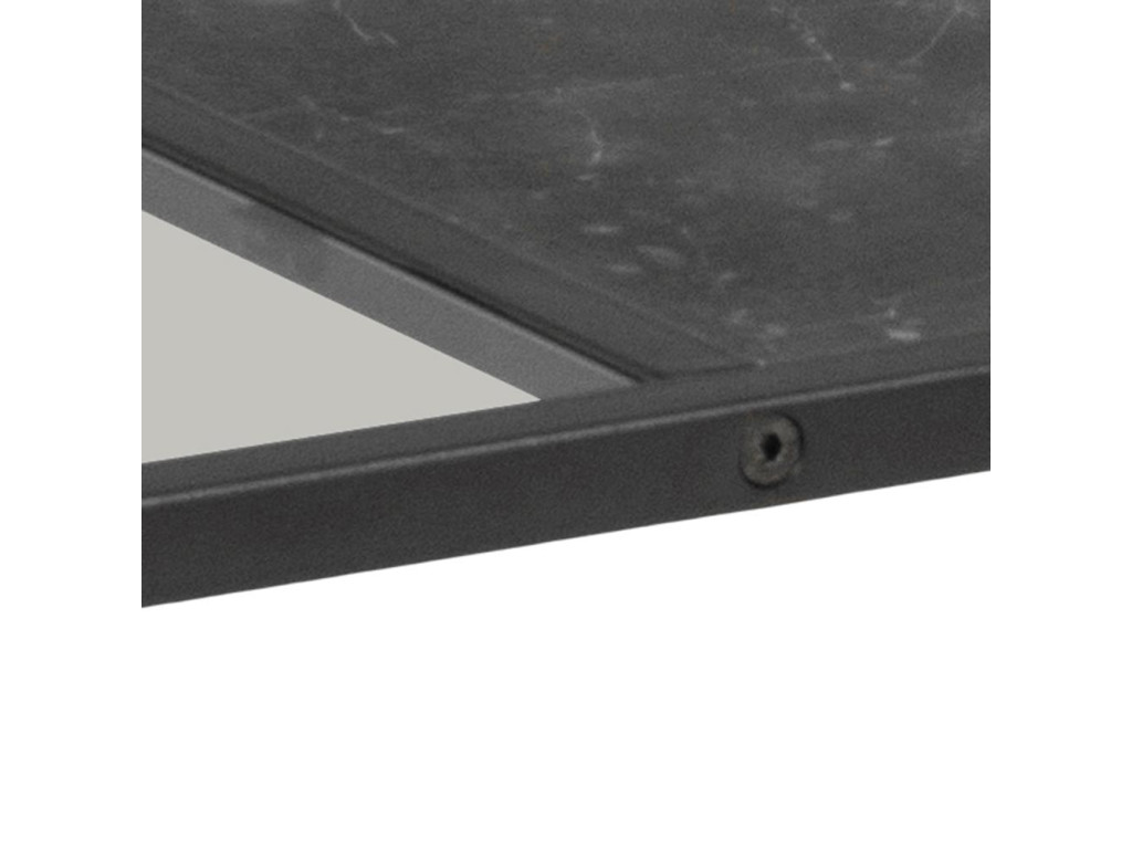 - Delená stolová doska – jedna polovica z dymového tvrdeného skla, druhá s čiernym mramorovým vzhľadom (matná čierna Izmir melamín)