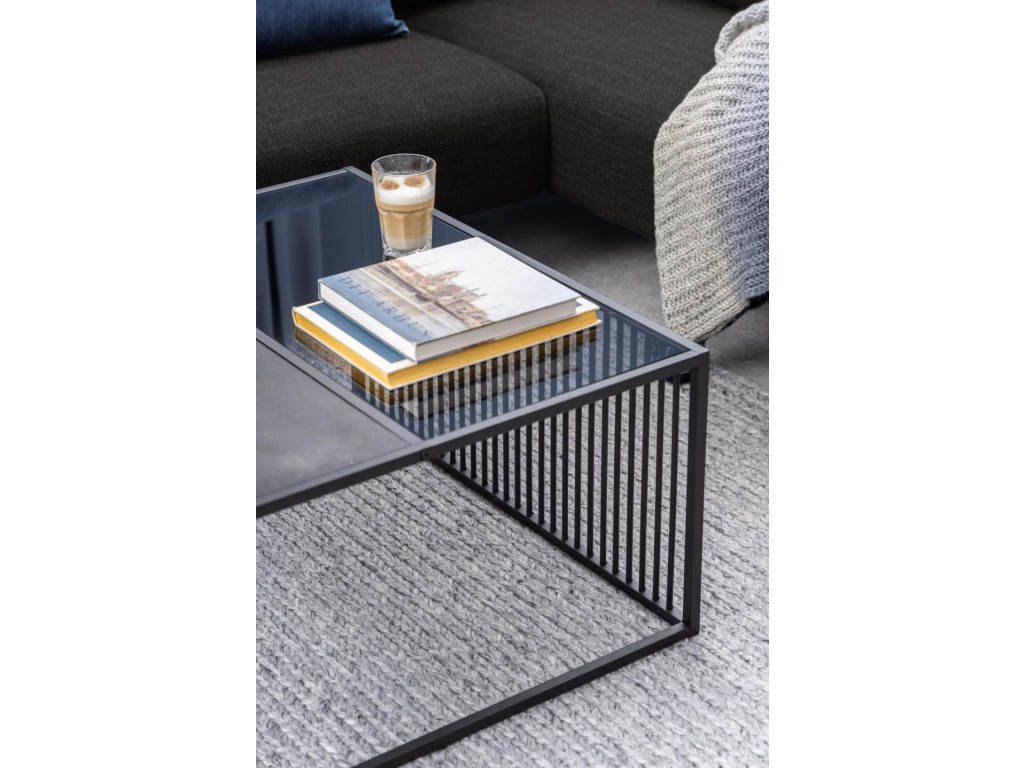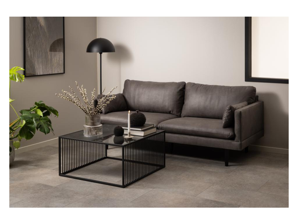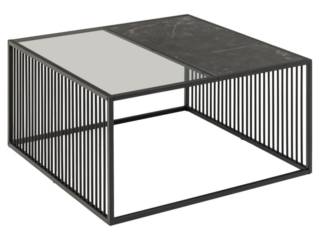 Tento konferenčný stolík z kolekcie Strington v štvorcovom prevedení ponúka harmonickú rovnováhu medzi geometrickou čistotou a dizajnovým kontrastom. Stolová doska je rozdelená na dve časti – jedna je z dymového tvrdeného skla, druhá z matného čierneho melamínu v dekore Izmir s mramorovým vzhľadom. Boky stolíka dopĺňajú zaoblené, zvislé kovové lamely, ktoré zvýrazňujú jeho architektonický charakter a zároveň zabezpečujú vizuálnu ľahkosť. Kompaktný rozmer robí zo stolíka ideálne riešenie do menších obývacích priestorov alebo ako doplnok k väčšiemu kusu z rovnakej kolekcie.