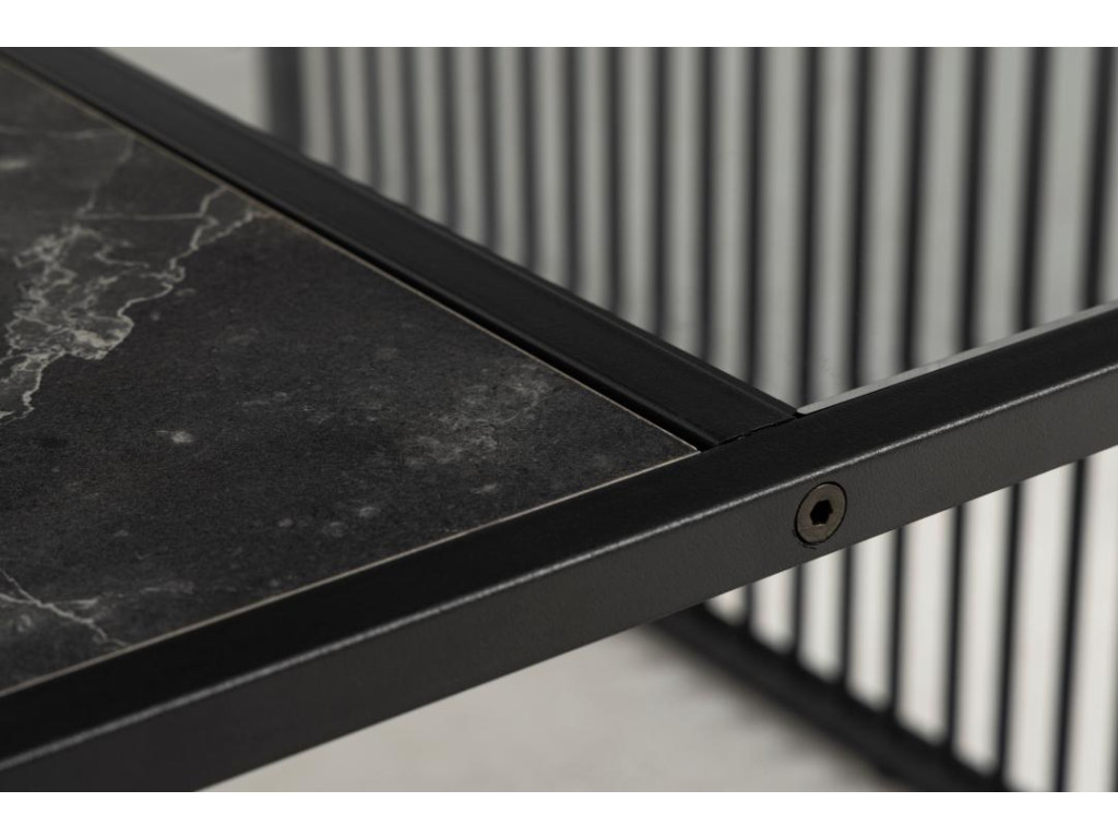 Kolekcia Strington je stelesnením súčasného dizajnu, ktorý prepája grafickú čistotu a zmysel pre detail. Každý kus je navrhnutý tak, aby zaujal z každého uhla – či už ide o štíhle vertikálne drôty, zaoblené kovové lamely alebo povrchy s čiernym mramorovým vzhľadom a efektom dymového skla. Nábytok v kolekcii pôsobí otvorene, no zároveň vyžaruje pevnosť vďaka konštrukcii z čiernej ocele s hrubým práškovým nástrekom. Kolekcia si pohráva s kontrastmi – tvrdé a jemné, plné a prázdne, matné a lesklé – a vytvára tak výrazný, ale harmonický dizajnový rukopis.