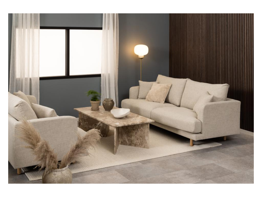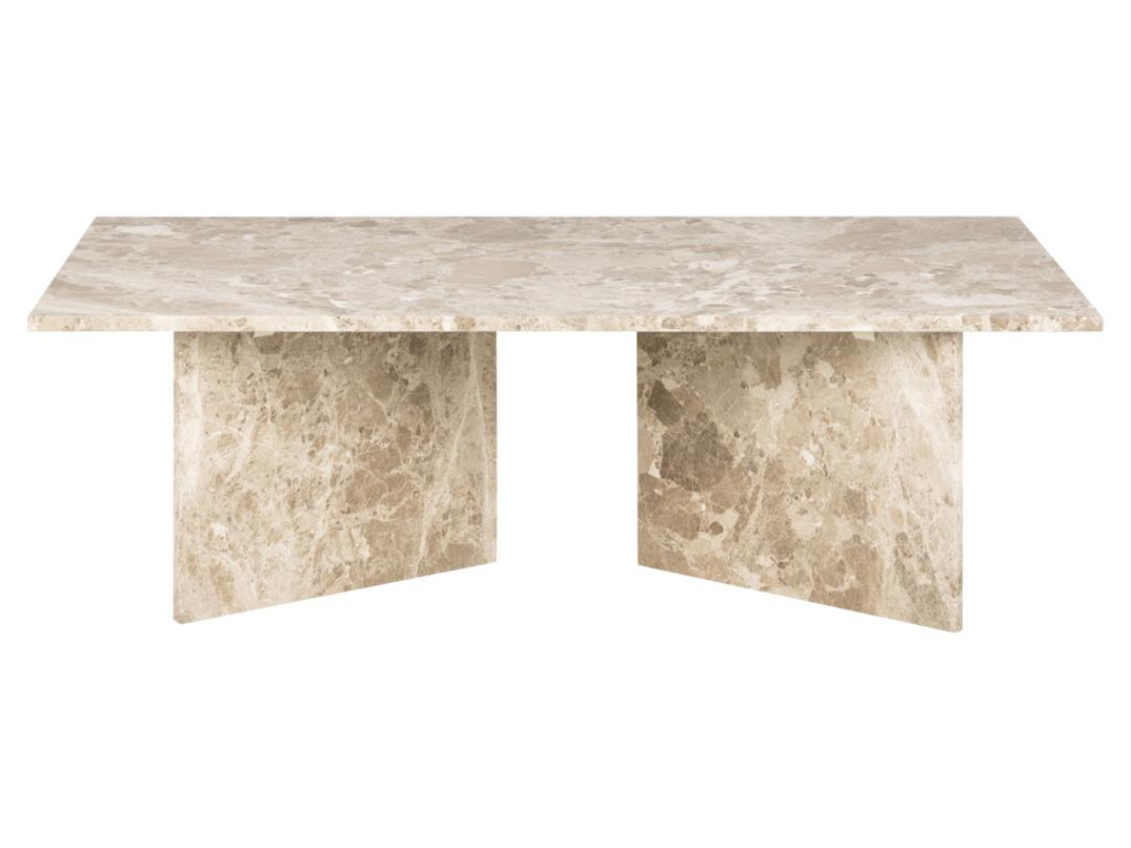 Konferenčný stolík Vega v prevedení latte svetlohnehého mramoru je oslavou minimalistickej elegancie a sochárskeho dizajnu. Jeho čistá obdĺžniková doska a výrazná základňa v tvare V vytvárajú silný vizuálny dojem a zároveň zabezpečujú stabilitu a rovnováhu.