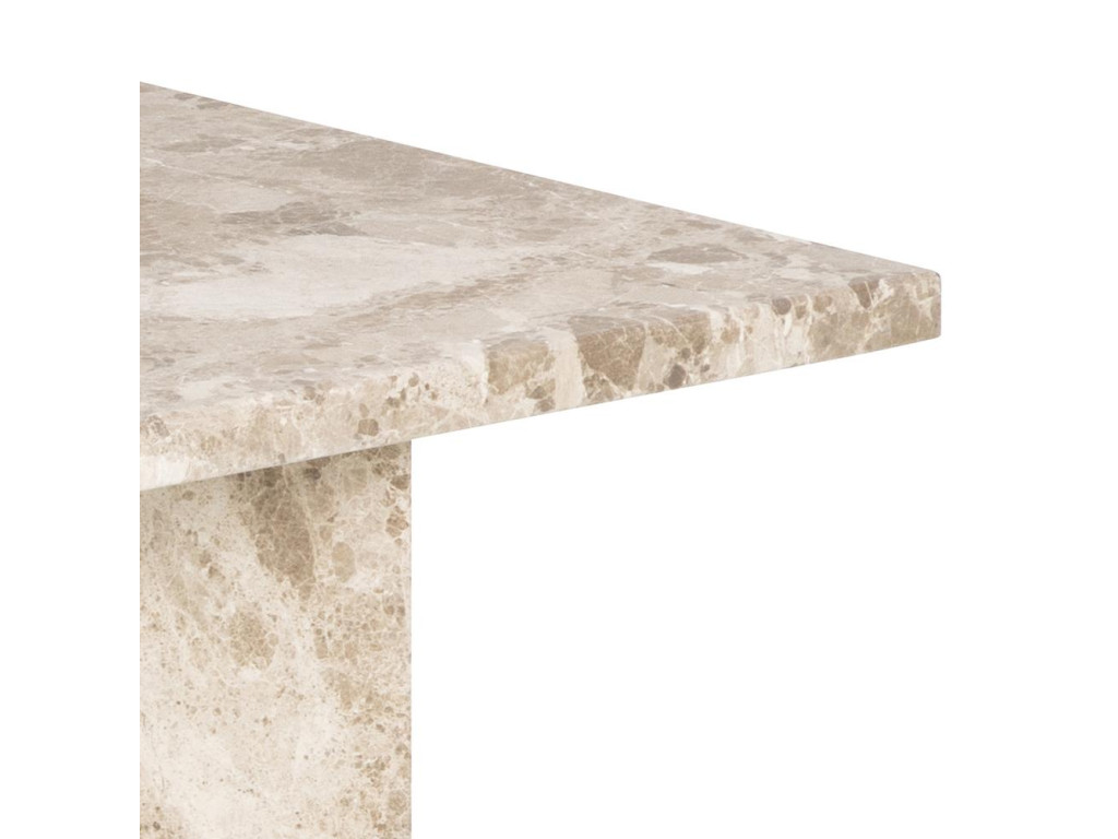 Vega konferenčný stolík s podstavcom a doskou z mramoru Latte prináša luxusný vzhľad a robustné spracovanie. Jeho obdĺžnikový tvar sa ideálne hodí pred pohovku a výborne vynikne v elegantnom či modernom interiéri.