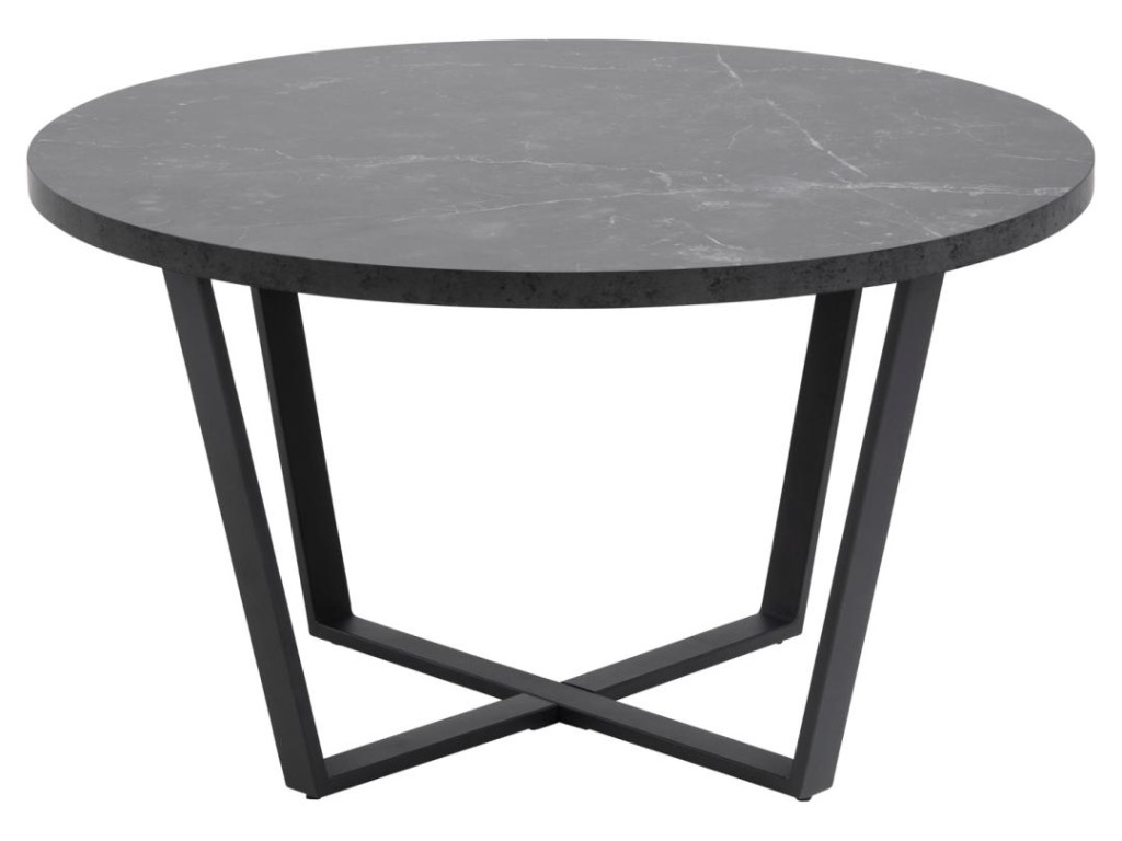 Stolík Amble s čiernym mramorovým melamínovým povrchom a čiernou oceľovou základňou ponúka elegantný a odolný dizajn. Vďaka okrúhlemu tvaru sa skvele hodí ako doplnok do moderného interiéru.