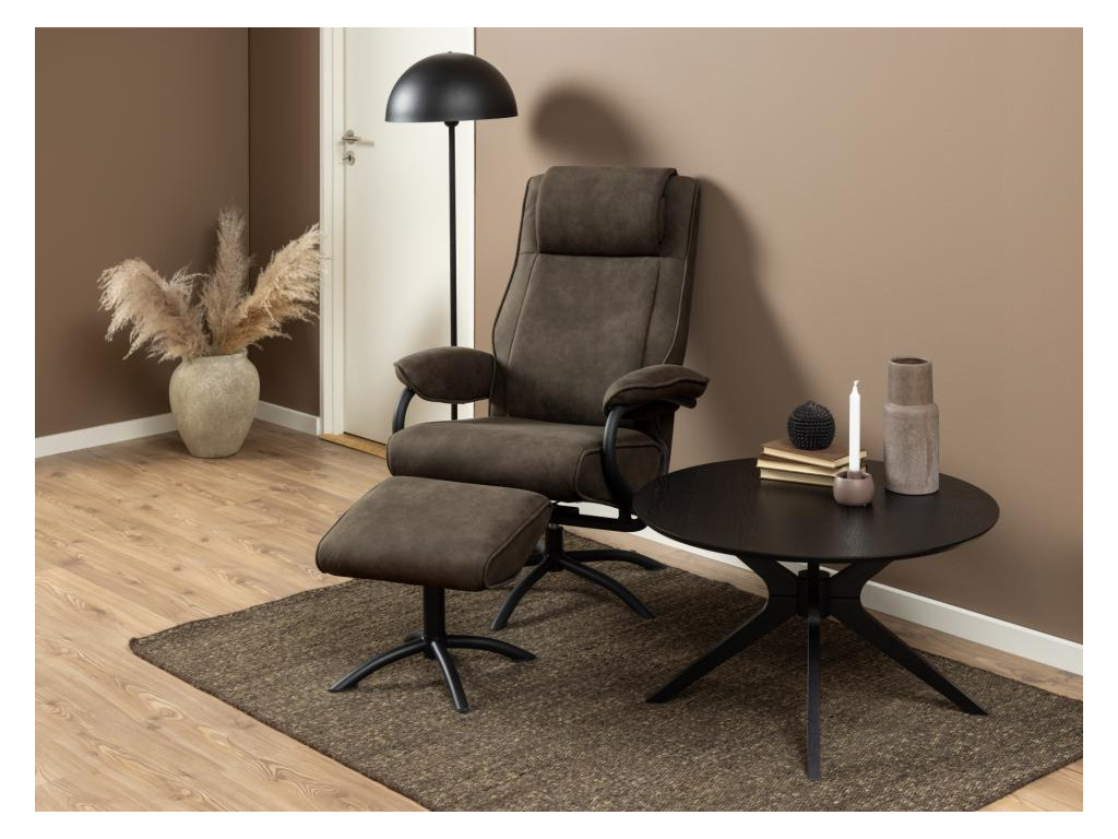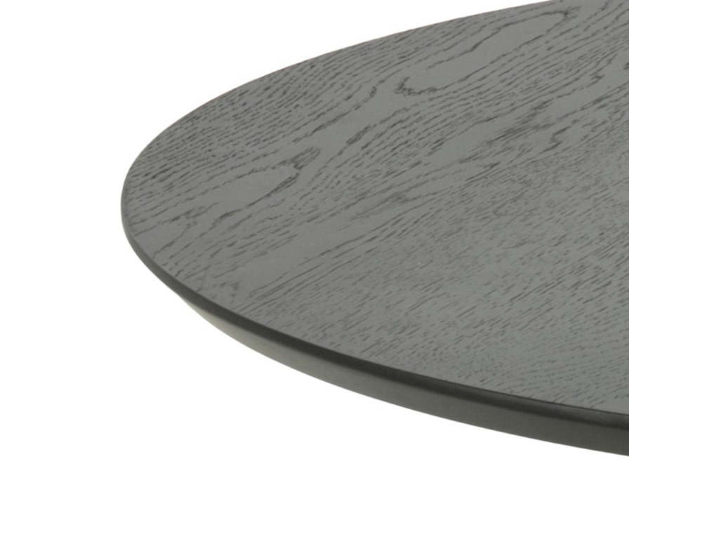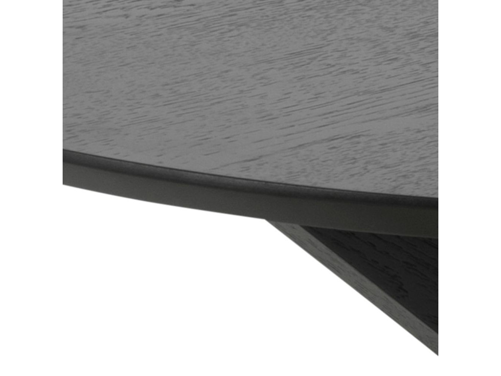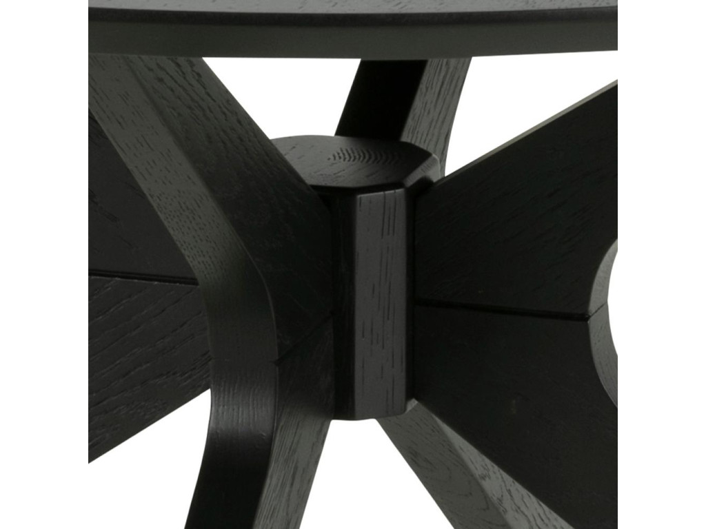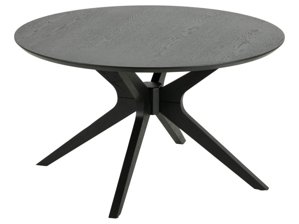 Konferenčný stolík Duncan v čiernej dubovej dyhe predstavuje elegantné stelesnenie moderného dizajnu s nádychom polovice 20. storočia. Okrúhla doska a štvorramenná podnož sú vyrobené z rovnakého materiálu a majú rovnaký matný povrch, čo vytvára harmonický a jednotný vzhľad. Vizuálne ľahký, no stabilný stôl je ideálnym doplnkom do obývačky, ktorá si potrpí na dizajnové detaily. Vďaka odolnému PU laku sa ľahko udržiava a je pripravený na každodenné používanie.