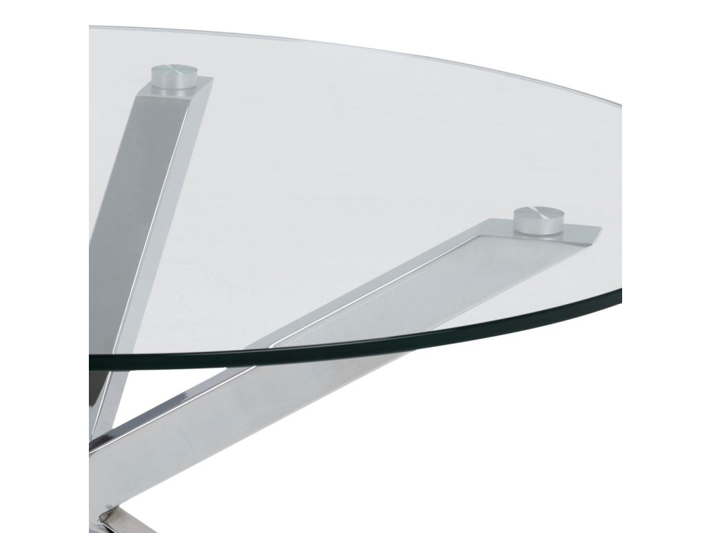 Okrúhly stolík Heaven so sklenenou doskou a lesklou chrómovou konštrukciou pôsobí ľahko a vzdušne. Skvele sa hodí do moderných obývacích izieb, kde vytvorí elegantný stredobod. Tvrdené sklo zaručuje odolnosť a stabilitu.