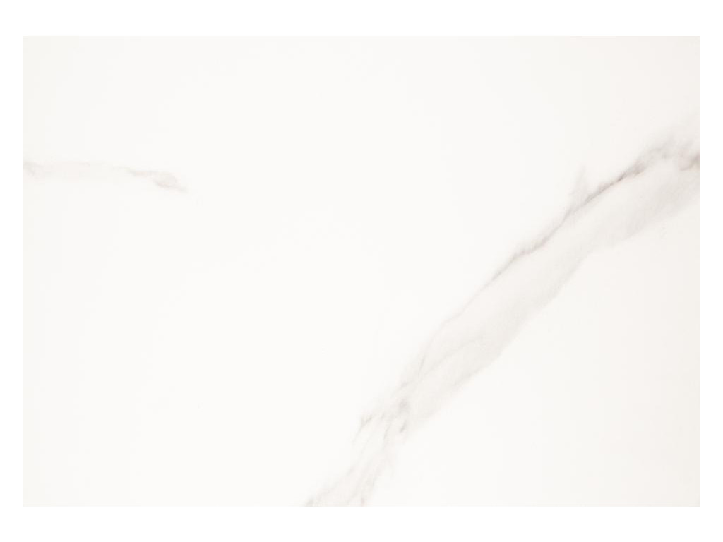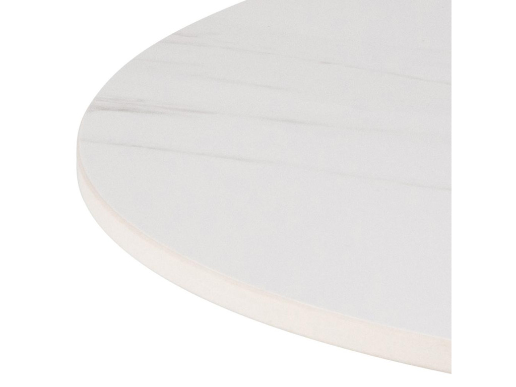Vrchná doska je vyrobená z keramiky s bielym mramorovým vzhľadom Unico, ktorá pôsobí elegantne, svetlo a vzdušne, no zároveň je odolná voči teplu a poškriabaniu, čo zaručuje dlhodobú funkčnosť. Stabilitu zabezpečuje okrúhla trúbková podnož z ocele s bielym práškovým nástrekom, ktorá esteticky ladí s doskou a celkovo pôsobí subtílne a moderne.