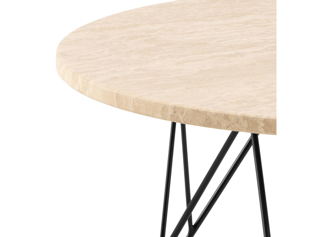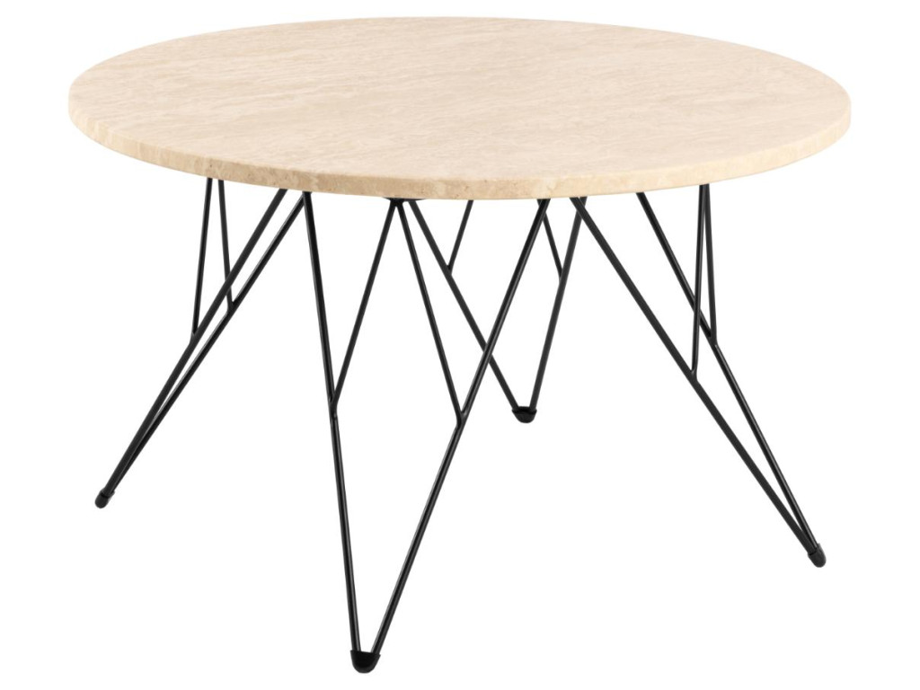 Béžový konferenčný stolík Prunus spája prírodný vzhľad kameňa s pevnosťou čiernej ocele. Hodí sa do moderných aj tradičných obývačiek. Vďaka okrúhlemu tvaru pôsobí prívetivo a harmonicky.