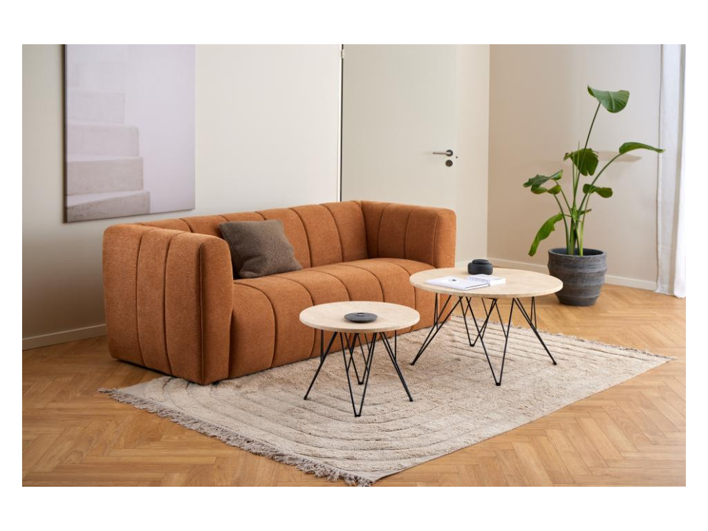 Minimalizmus s dávkou charakteru. Stolík Prunus spája matnú béžovú travertínovú dosku s jemnou kresbou kameňa a vzdušnú čiernu oceľovú základňu s práškovým nástrekom. Výrazný kontrast tvarov a materiálov robí z tohto stolíka nadčasový kúsok, ktorý prirodzene zapadne do moderných aj klasických interiérov.