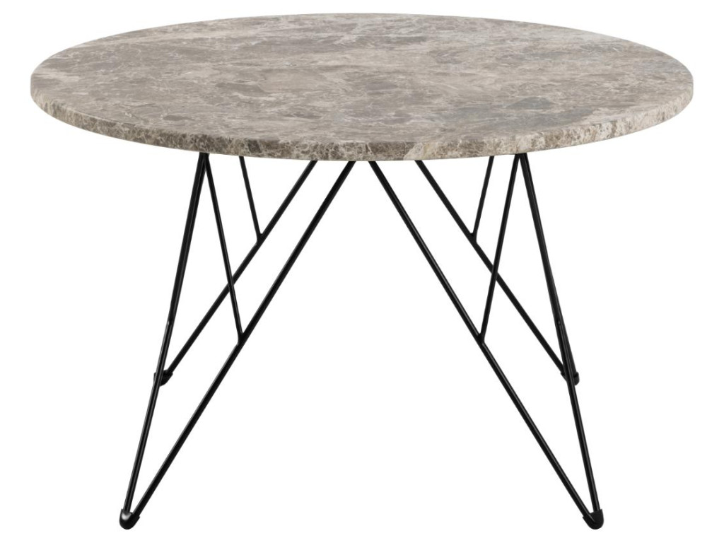 Stolík Prunus v kombinácii hnedého lakovaného mramoru a čiernej ocele pôsobí luxusne a moderne. Okrúhly tvar a drôtená základňa vytvárajú ľahkosť. Vhodný do moderných interiérov s dôrazom na dizajn. Elegantné riešenie pre obývačku či salónik.