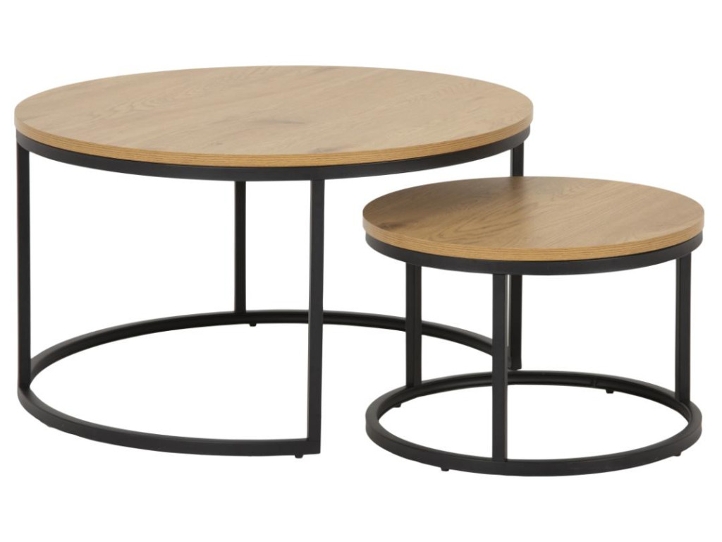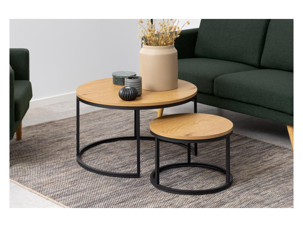 Súprava Spiro ponúka kombináciu prírodného vzhľadu a čierneho rámu. Stolíky z divokého dubu a čiernej ocele pôsobia prirodzene, ale sú dostatočne moderné pre každú obývaciu izbu. Rôzne výšky zabezpečujú praktickosť a flexibilitu.