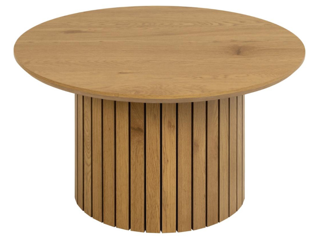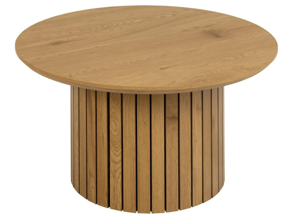 Konferenčný stolík Yale v okrúhlom vyhotovení s povrchom z divokého duba dodáva obývačke rustikálny šarm a prirodzenosť. Jeho lamelová predná strana a masívny podstavec sú esteticky aj funkčne pôsobivé. Vďaka priemeru 80 cm poskytuje dostatok priestoru, pričom si zachováva kompaktnosť. Skvelý doplnok k prírodne alebo minimalisticky ladeným interiérom.