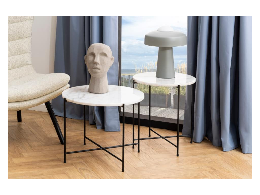 Okrúhly stolík Avila s bielym mramorom Guangxi a čiernou oceľovou podnožou vytvára jemný kontrast, ktorý rozžiari každý interiér. Elegantný, pevný a mimoriadne štýlový.