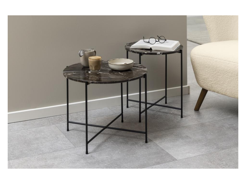 Okrúhly príručný stolík Avila 42 - hnedý mramor / čierna