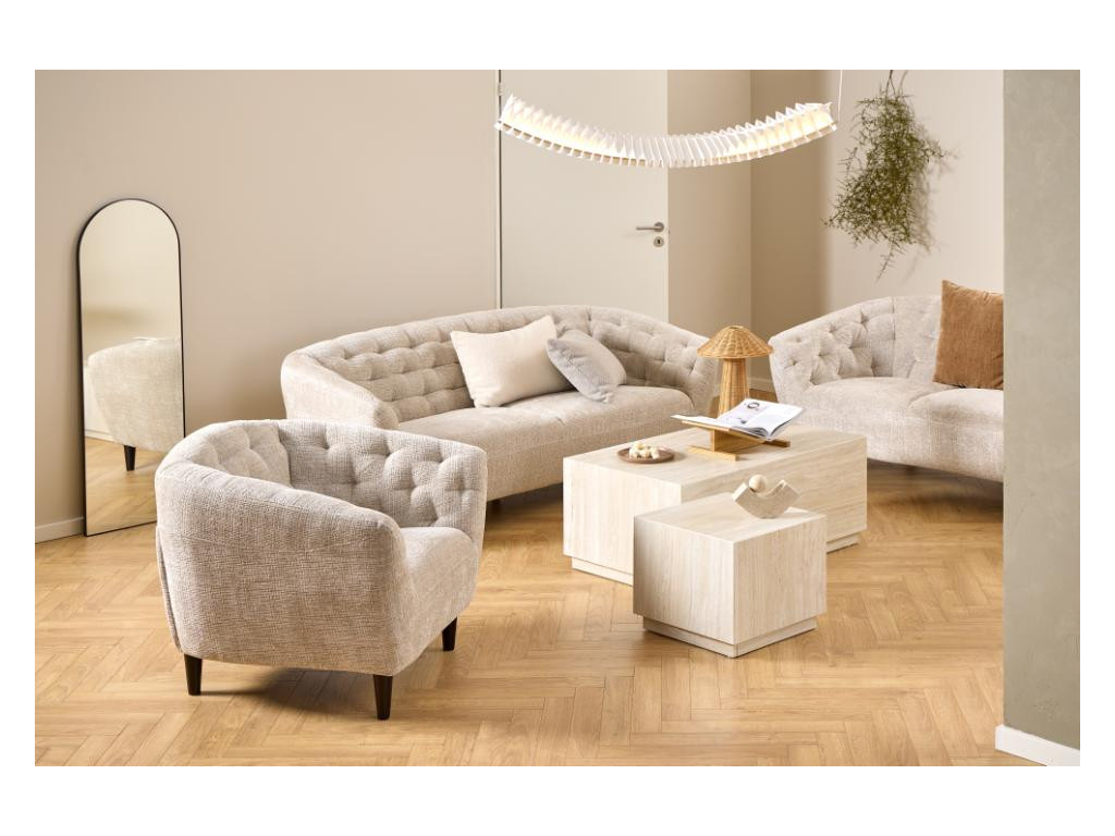 Prírodný a svetlý – taký je travertínový vzhľad tejto súpravy stolíkov, ktorý rozjasní každý priestor. Teplý béžový tón krásne ladí s drevom, neutrálnymi aj zemitými odtieňmi. Či už ide o minimalistickú obývačku alebo útulný kútik na kávu, táto súprava zapadne s ľahkosťou.