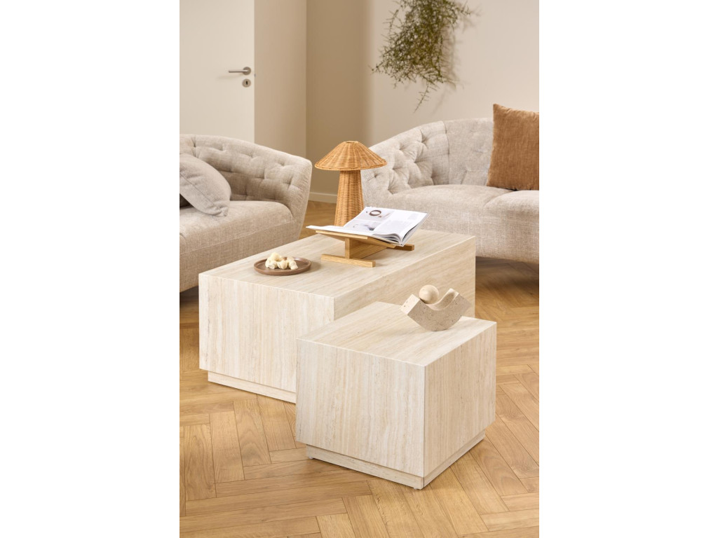 - Béžový travertínový vzhľad dodáva stolíkom hrejivý, prírodný štýl