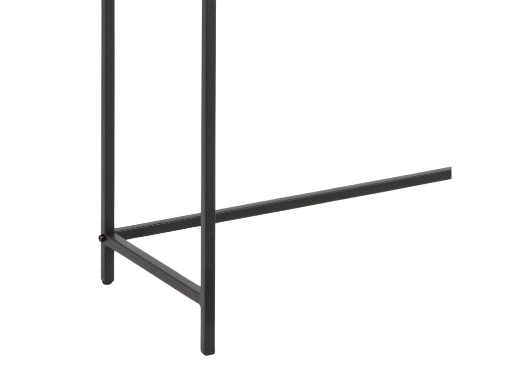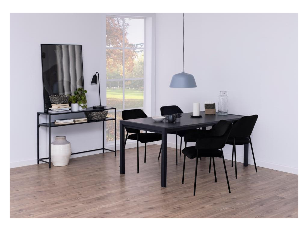 Seaford stolík v celom čiernom vyhotovení pôsobí elegantne a univerzálne. Povrch z melamínu a kovová základňa tvoria odolnú a nenápadnú kombináciu. Vhodný ako minimalistický odkladací stolík alebo konzola do moderného interiéru.