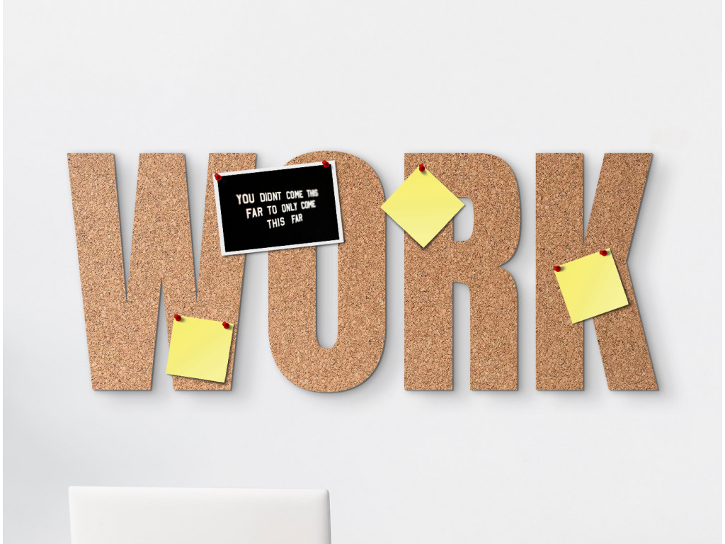 Korkový nápis na stenu Work