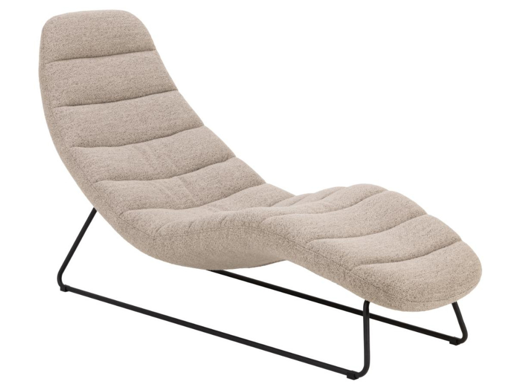 Chaplin chaise longue, beige Monza, base matt black rough powder coated steel, with horizontal stitchings, 63x156x86 cm
