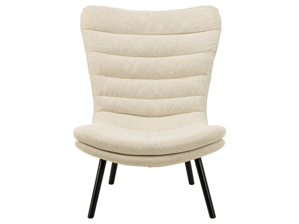 Odpočinkové kreslo Grafton v krémovej farbe je komfortný kúsok s výrazným dizajnom. Kombinácia mäkkej látky a čiernej podnože z kaučukovníka vytvára elegantný kontrast. Horizontálne prešívanie dodáva charakter a štýl každému obytnému priestoru.