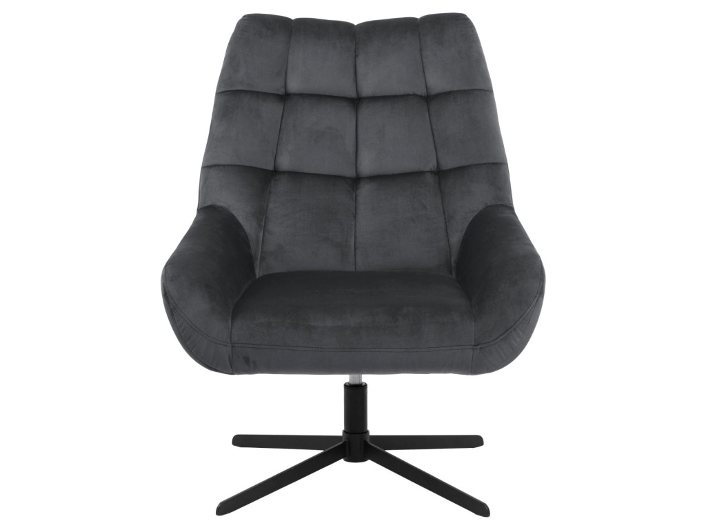 Otočné kreslo Paris v tmavosivej farbe ponúka pohodlie v modernom dizajne. Čierna oceľová základňa a štvorcové prešívanie dodávajú eleganciu. Otočná funkcia zvyšuje praktickosť pri každodennom používaní. Vhodné do obývačky, pracovne aj čitárne.
