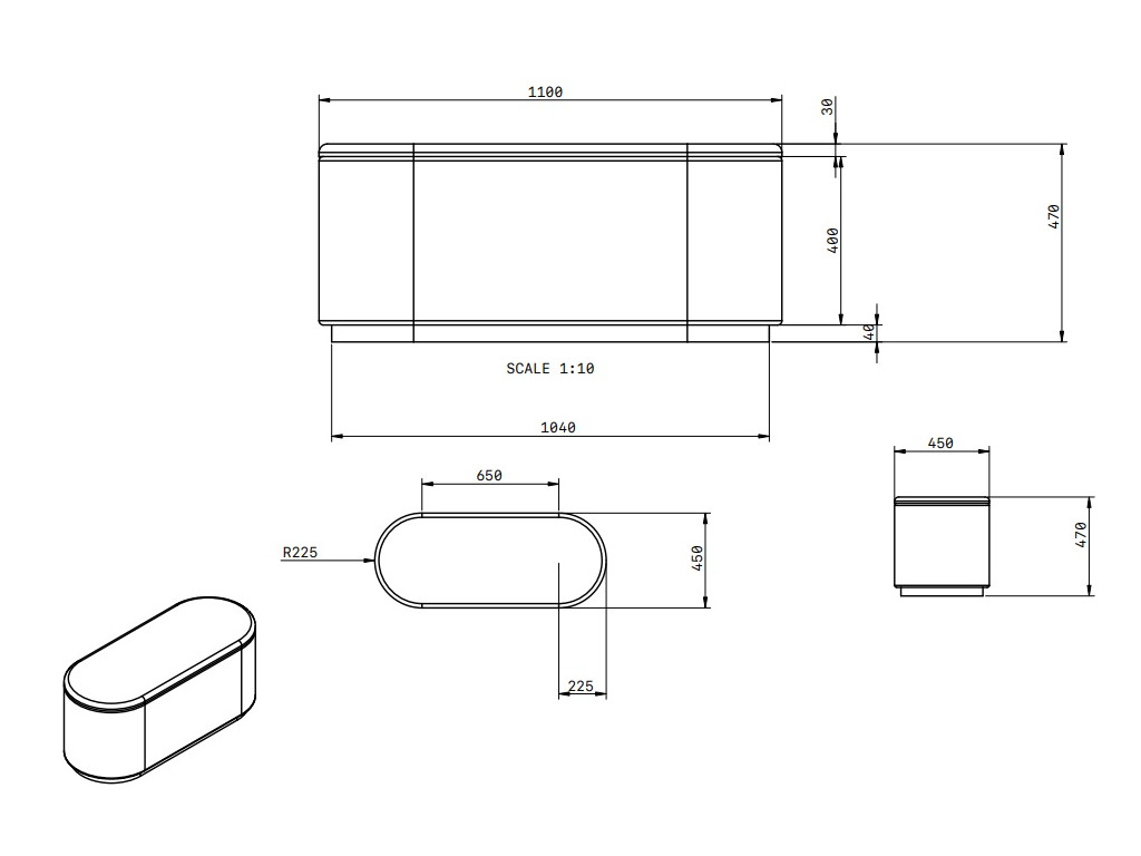 Oválna taburetka s úložným priestorom Seleste - grafitová