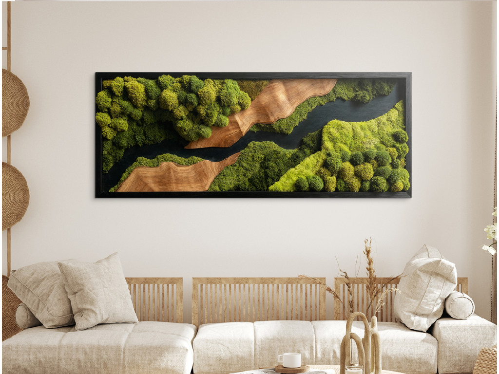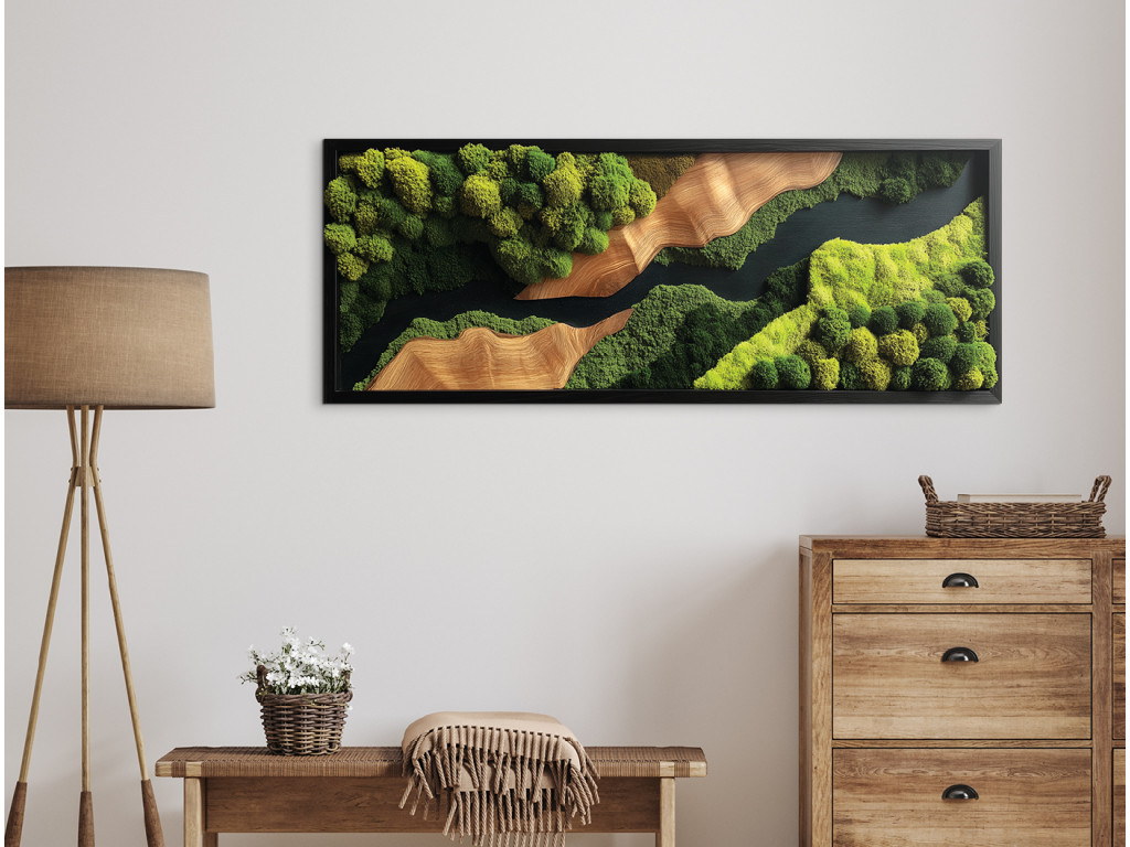 Doprajte si machový obraz Spočinutie (UV tlač), ktorý pôsobí ako živý, no bez nutnosti polievania či svetla. Realistická imitácia machu je nielen cenovo dostupnejšia, ale aj trvácnejšia než originál. Váš priestor získa štýlový dizajnový prvok s dlhou životnosťou a nulovou údržbou. Tento obraz je ideálnym riešením pre moderný domov alebo kanceláriu.