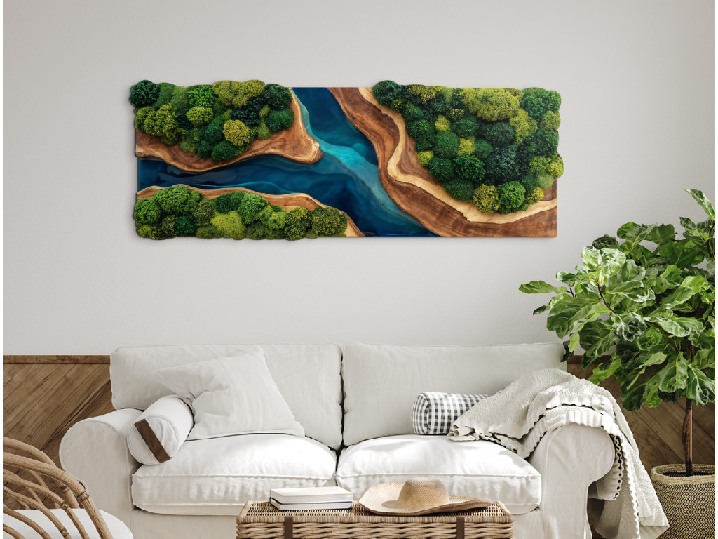 Tlačený machový obraz Prelínanie je dizajnový doplnok, ktorý spája krásu prírody a výhody modernej UV tlače. Oproti klasickým machovým obrazom, či epoxidovým doplnkom ponúka nižšiu cenu, jednoduchšiu údržbu a dlhodobú trvácnosť. Vďaka dokonalej imitácii vyzerá autenticky a dodá vášmu interiéru svieži zelený akcent. Urobte krok k modernej elegancii a doprajte si obraz, ktorý vydrží.
