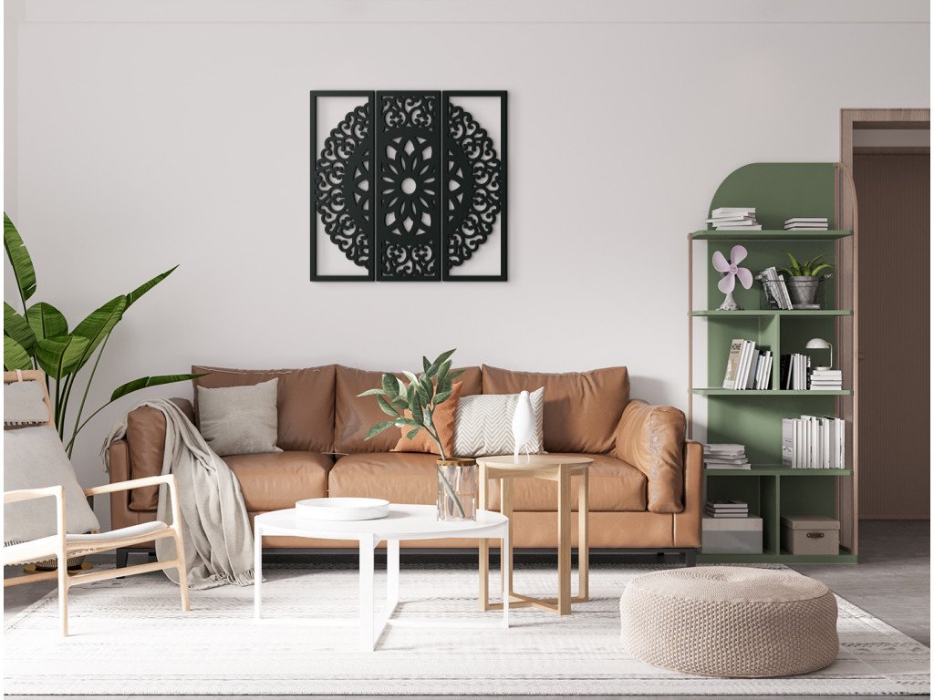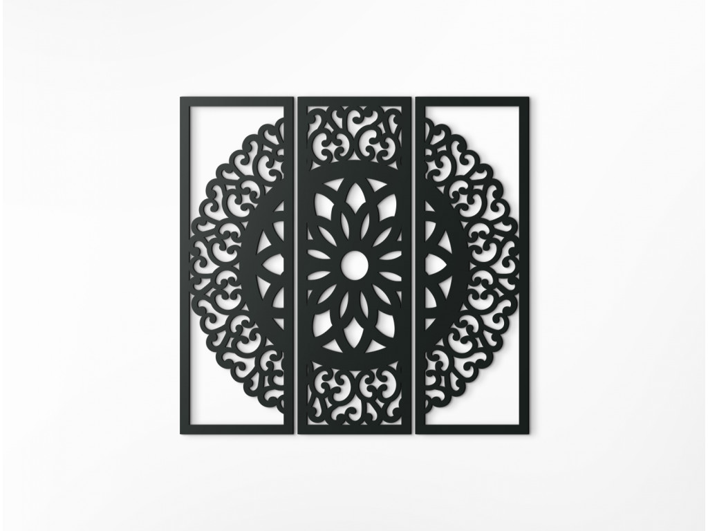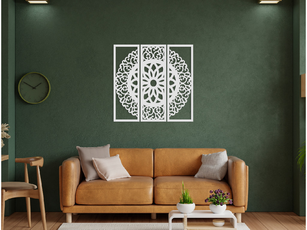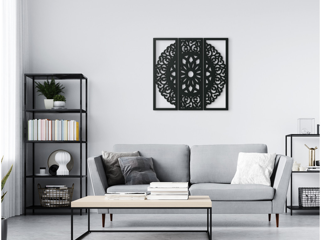 Ak hľadáte dekoráciu, ktorá v interiéri zažiari, ste na správnom mieste. Mandala Symetria sa rozprestiera na 3 dieloch, ktoré spolu súvisia a vytvárajú nádherný obraz do modernej obývačky.