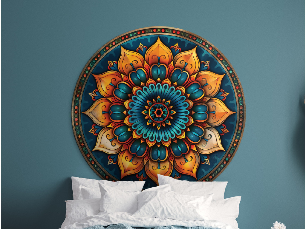 Mandala v hlbokých, smaragdovo zelených odtieňoch, evokuje mystický pokoj a vnútornú stabilitu. Skvele vynikne v modernom aj prírodnom interiéri.