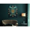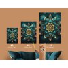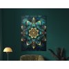 Elegantná vertikálna mandala zobrazuje detailný kvetinovo-symetrický vzor v kombinácii tyrkysových a zlatých tónov. Vďaka harmonickému lesku a precíznemu dizajnu pôsobí luxusne a zároveň upokojujúco – ideálna ako dekorácia do moderných aj boho interiérov.