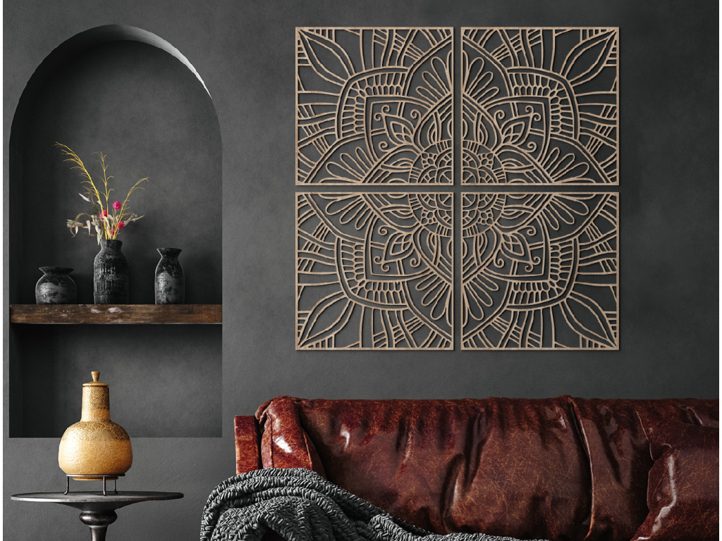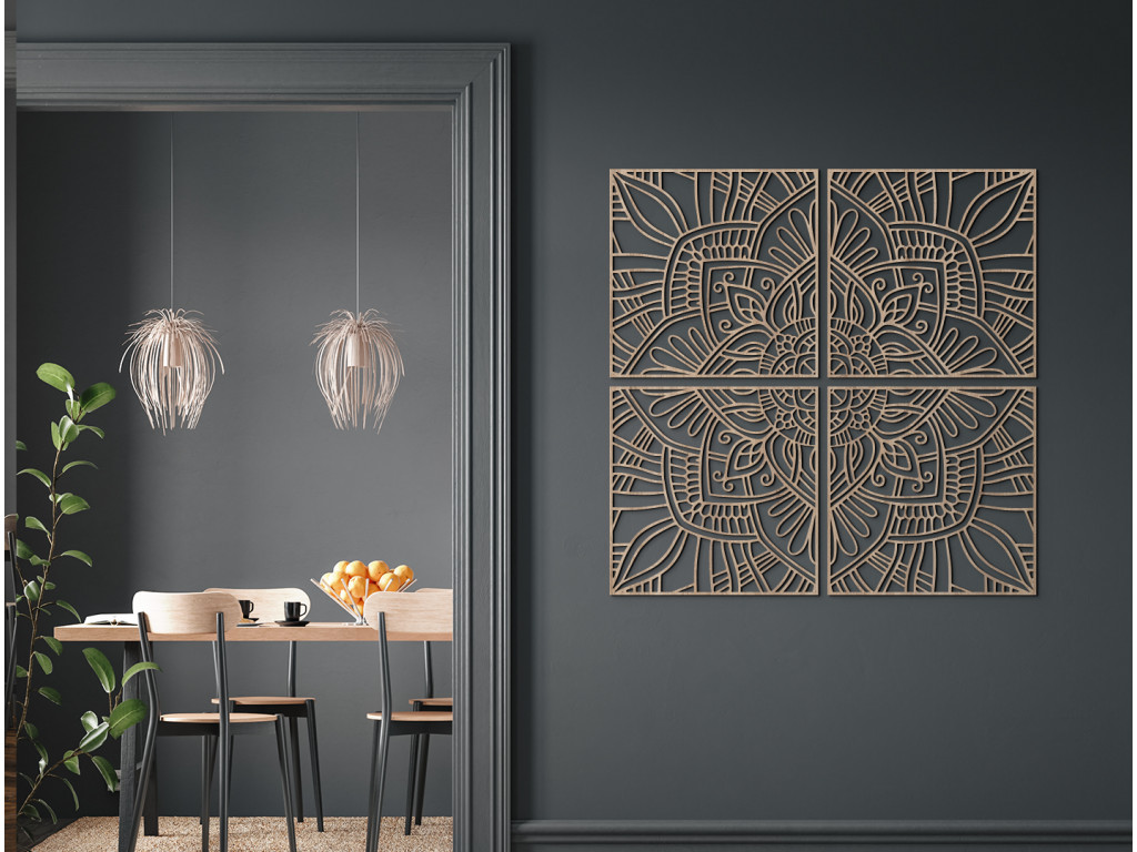Hľadáate dekoráciu, ktorá oslní váš interiér? V tom prípade je mandala Rovnováha tou správnou voľbou. Tento majestátny obraz sa skladá zo štyroch dielov, ktoré sa spájajú a vytvárajú tak krásny obraz mandaly.