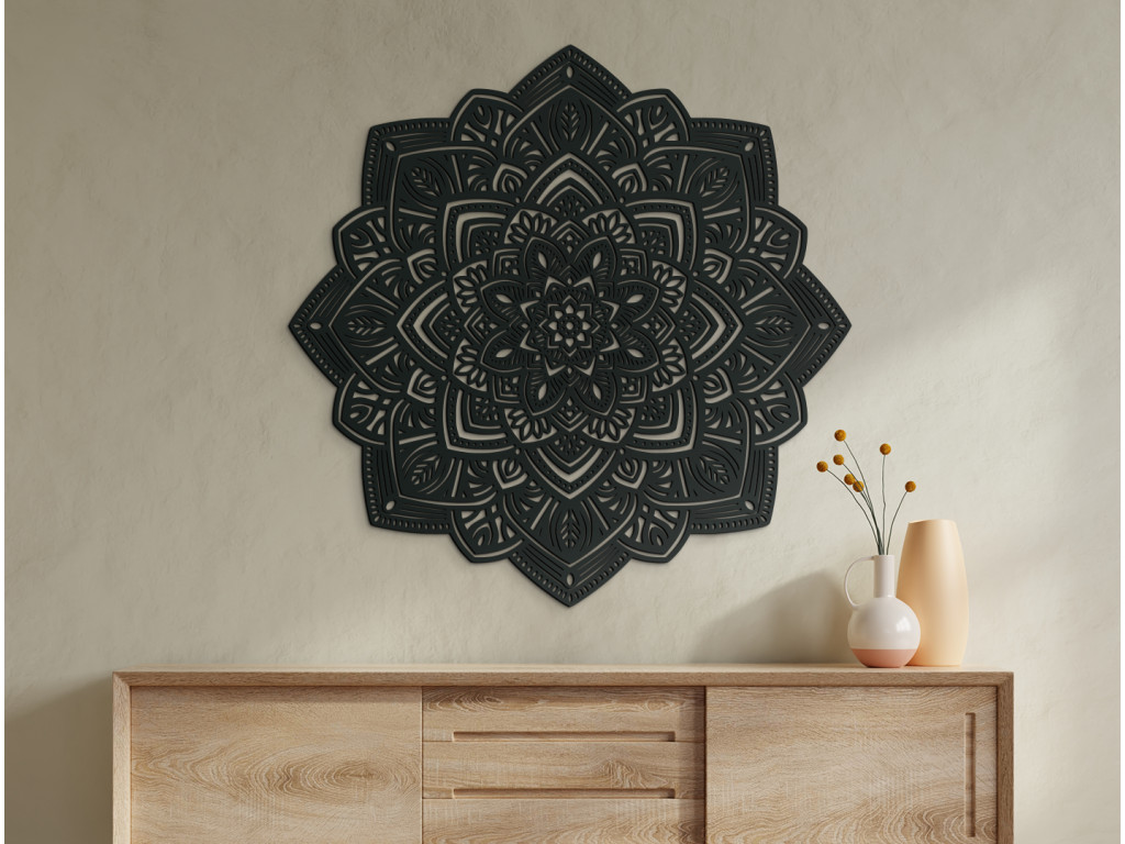 Drevená mandala je originálnou dekoráciou do každej miestnosti. Mnohí tvrdia, že na stene pôsobí nielen dekoratívne, ale aj upokojujúco. Mandaly sú v mnohých kultúrach duchovnými symbolmi, ktoré na človeka prenáša energiu, lásku a pozitívne myslenie. Symetria zapôsobí v modernom aj klasickom interiéri.
