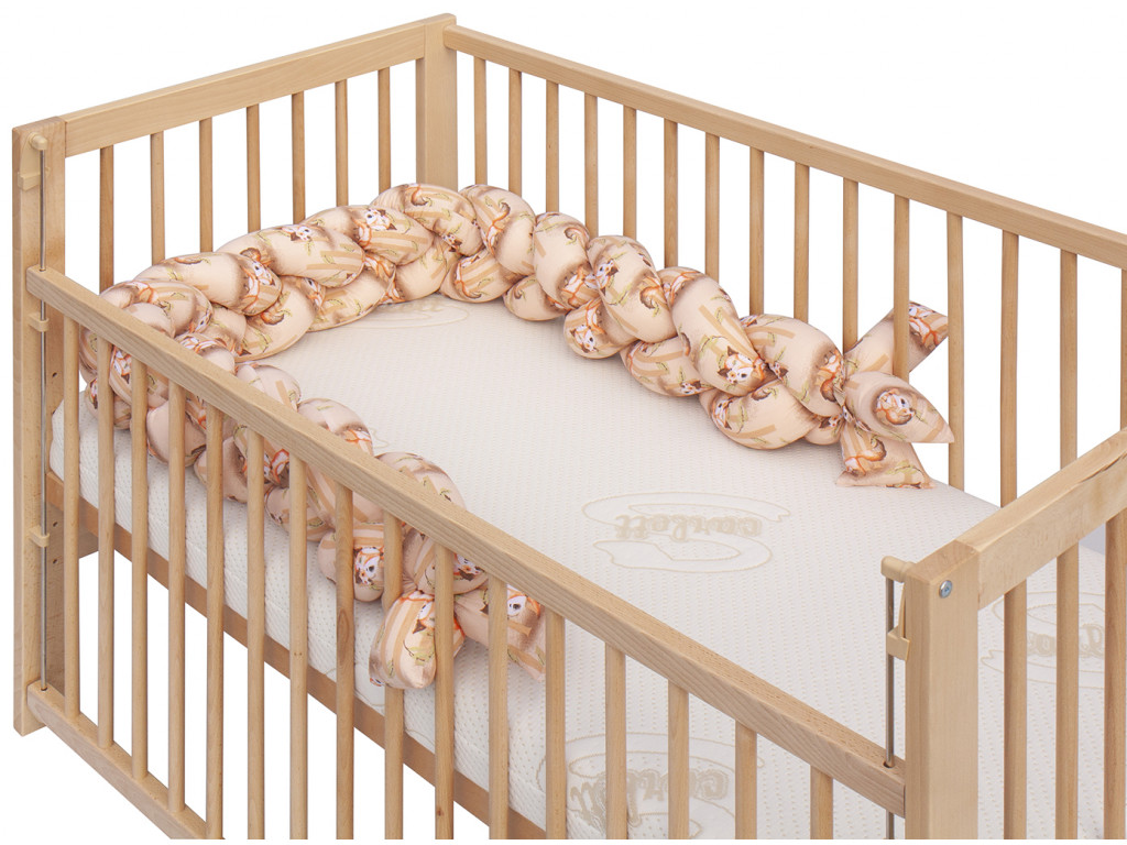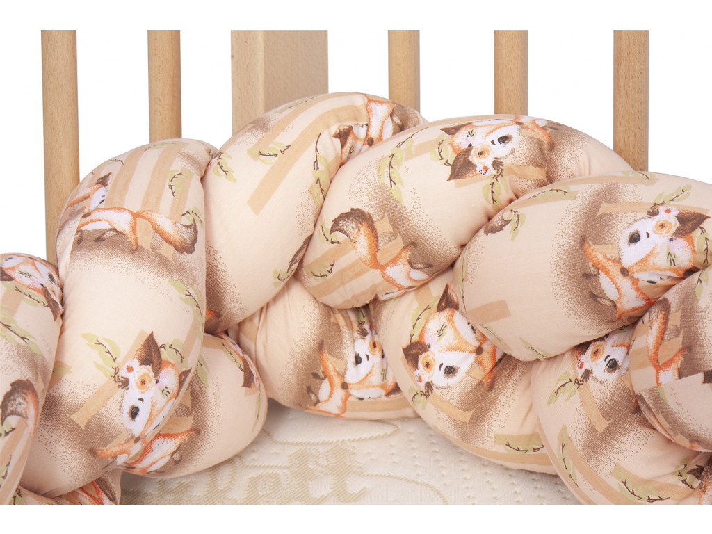 Béžový pletenec do postieľky Líška si deti obľúbia v každom veku. Keď budú deti malinké, môžete ich použiť do postieľky ako mantinel proti nárazu. Neskôr môžete pletený vrkoč použiť ako vankúš do postele či vymedzenie priestoru na hranie.