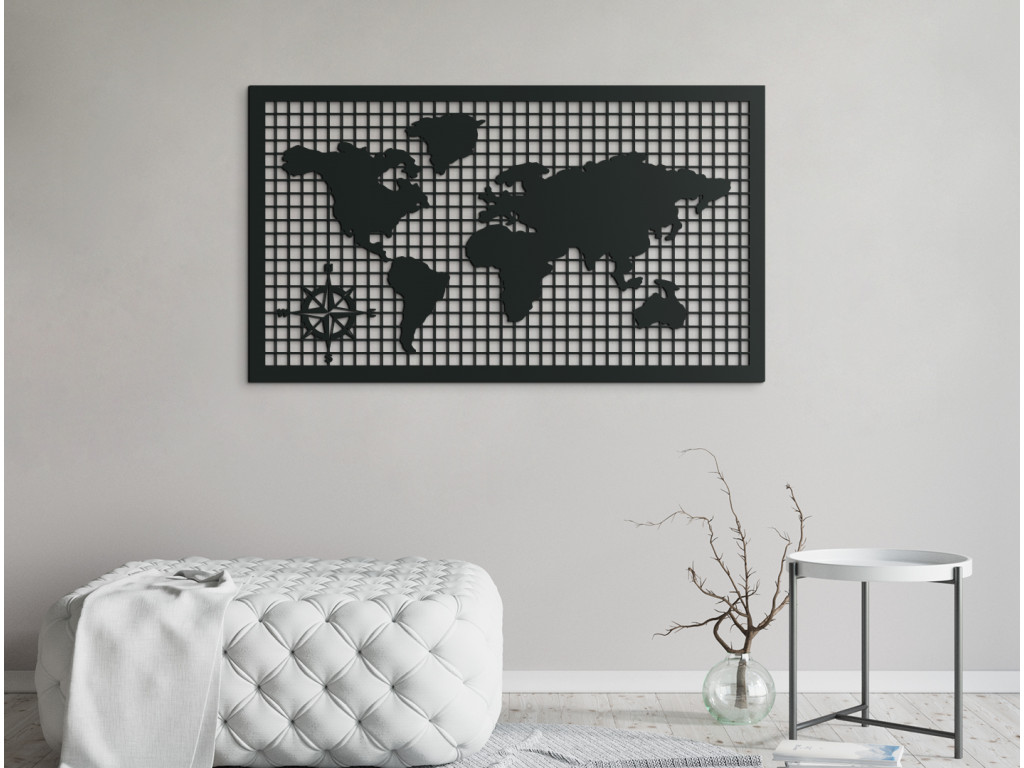 Ste milovník cestovania? Potom u vás nemôže chýbať drevená mapa sveta. Svetadiely vyrezané do kvalitného materiálu sú položené na horizontálnych a vertikálnych líniách. V rohu sa nachádza kompas. Obraz v tvare obdĺžnika vynikne v kancelárskych priestoroch, obývačke, spálni aj predsieni. Je tiež výborným nápadom na darček.