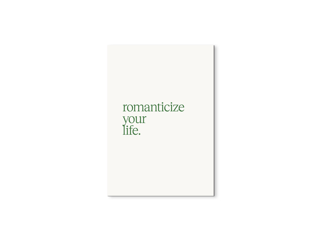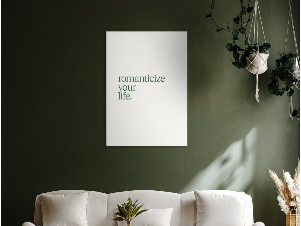 Motivačný obraz s nápisom „Romanticize Your Life“ (Romantizujte svoj život) pripomína, aby sme si všímali krásu každodenných momentov a vytvárali si život plný radosti a estetiky. Zelený text na bielom podklade pôsobí sviežo, harmonicky a prináša do priestoru pocit pokoja. V ľuďoch podporuje vďačnosť, pozitívne naladenie a schopnosť tešiť sa z maličkostí. Vďaka kvalitnej UV tlači vyniknú jemné farebné tóny a čisté línie, pričom obraz sa skvelo hodí do spálne, obývačky alebo moderného, esteticky ladeného interiéru.