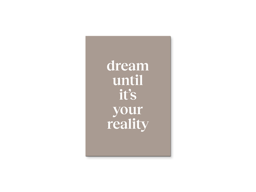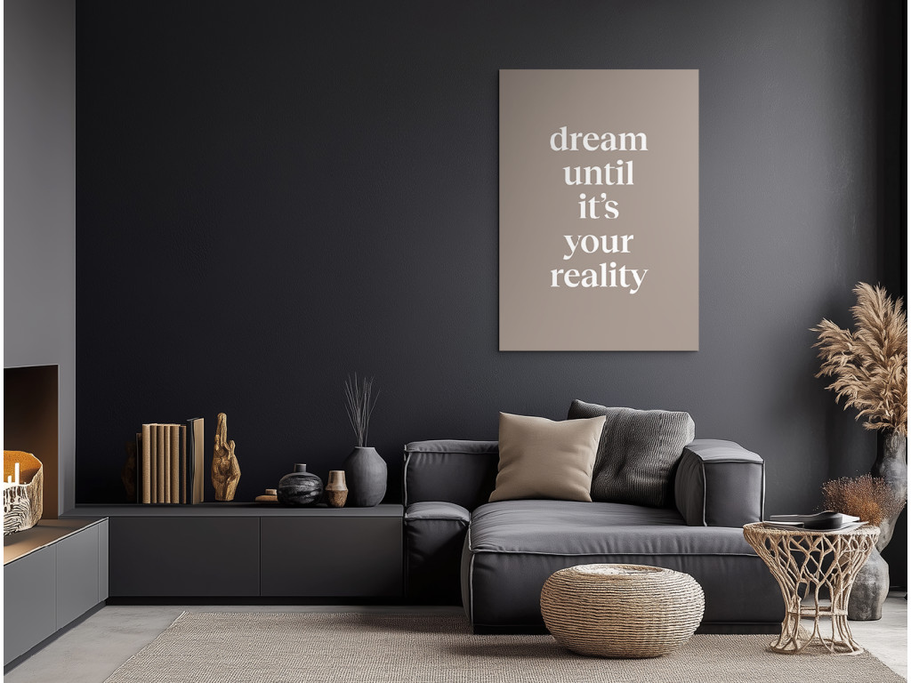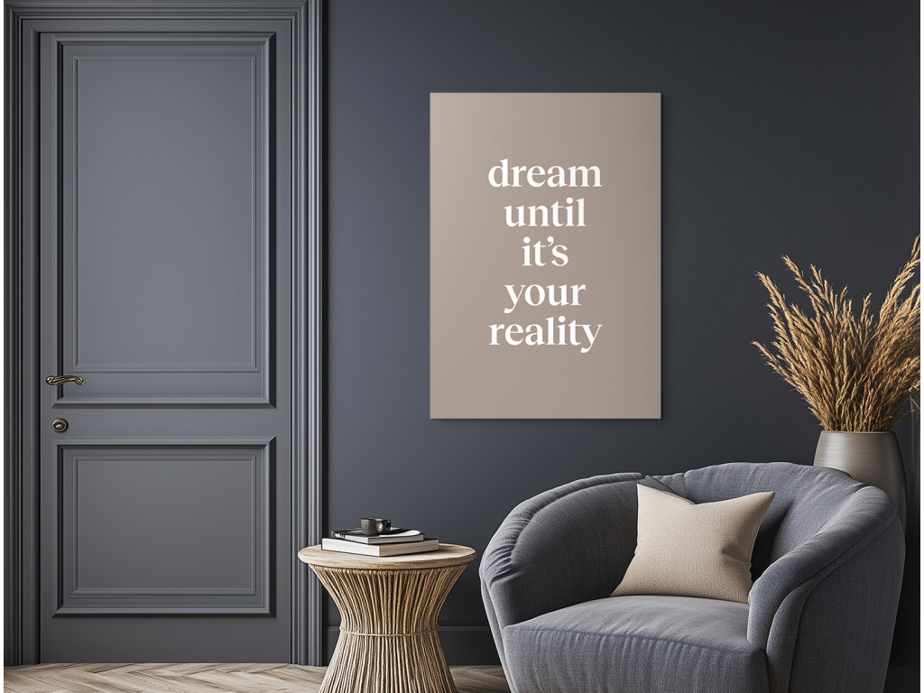 Motivačný obraz s posolstvom „Dream Until It’s Your Reality“ (Snívaj, až kým sa to nestane tvojou realitou) pripomína silu vytrvalosti a viery vo vlastné sny. Povzbudzuje, aby sme sa nevzdávali a pokračovali, kým sa naše ciele nepremenia na skutočnosť. Minimalistický dizajn pôsobí jemne, moderne a nadčasovo, vďaka čomu ľahko zapadne do rôznych typov interiéru. Vďaka kvalitnej UV tlači vyniknú čisté línie a dlhodobá trvácnosť, pričom obraz sa hodí do spálne, pracovne, študentskej izby či kreatívneho priestoru ako každodenná dávka motivácie.