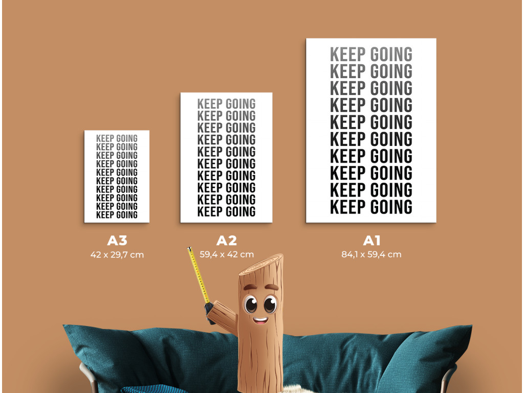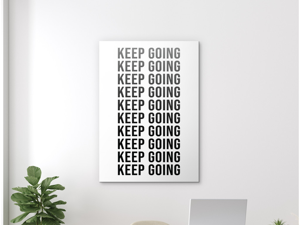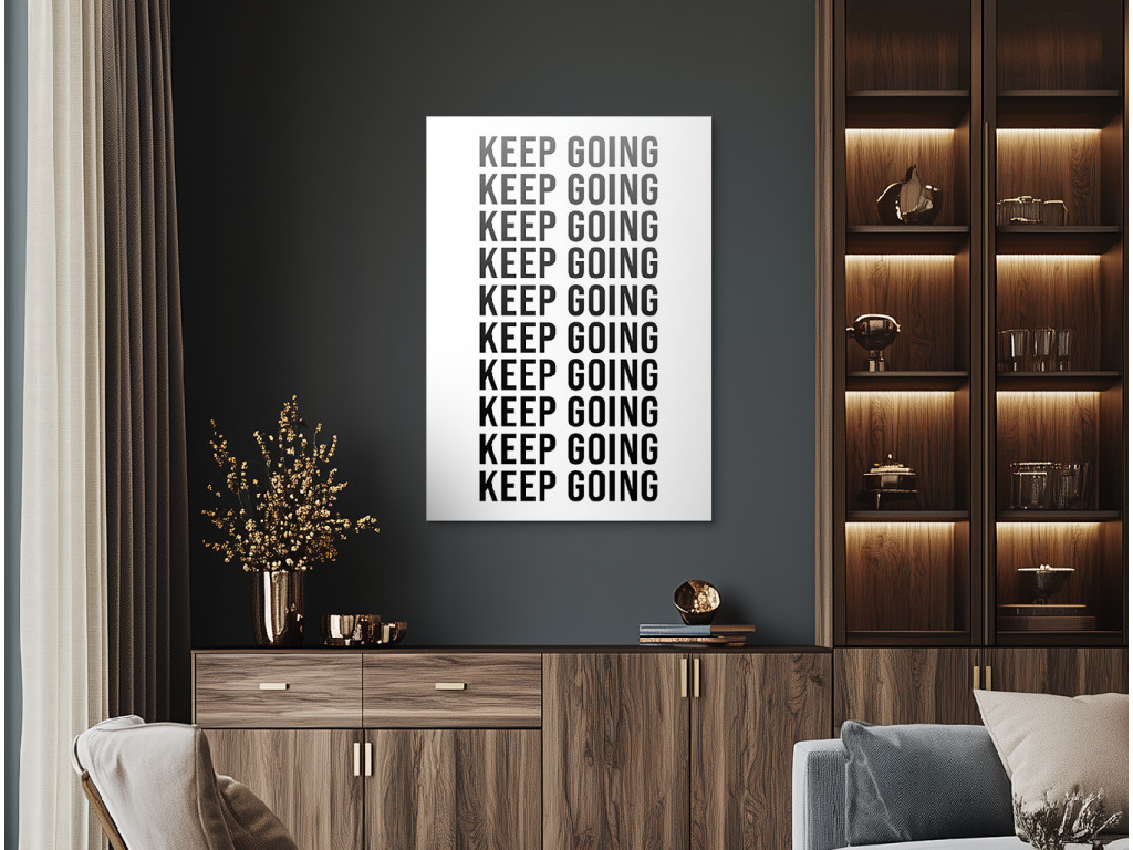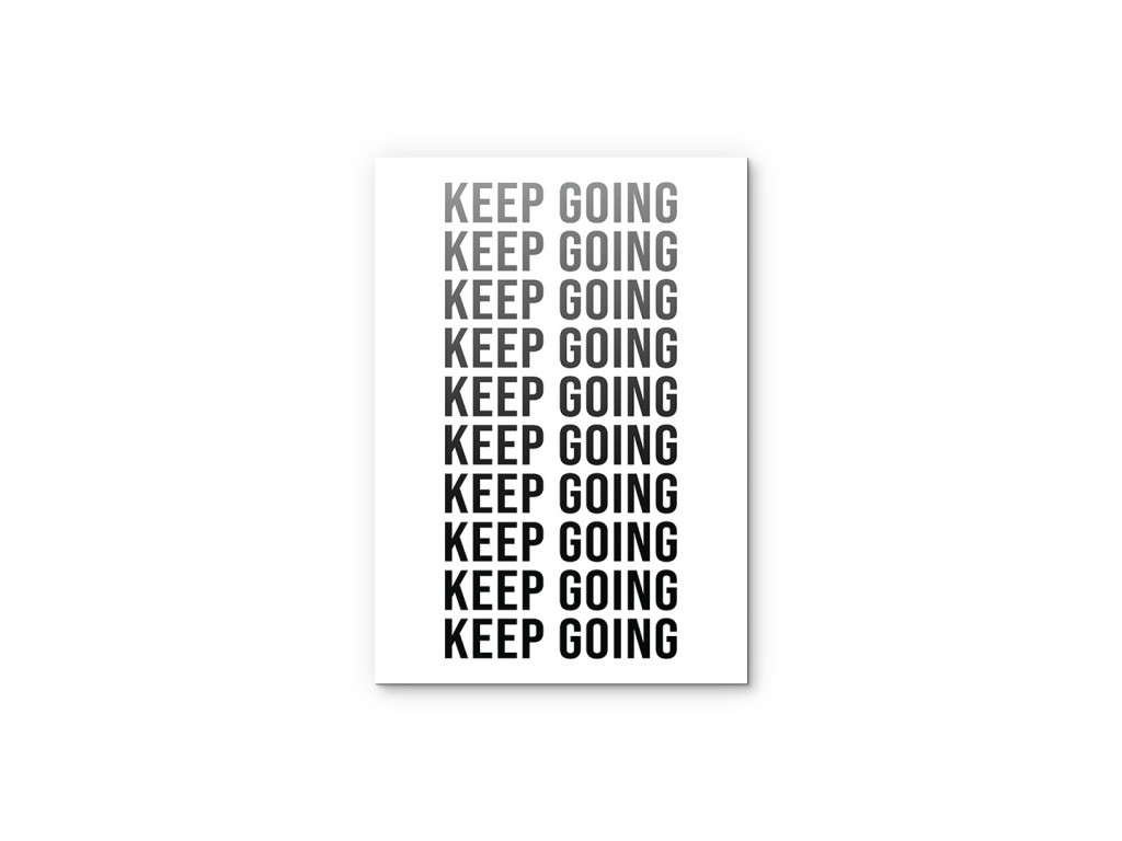 Motivačný obraz s opakovane napísanou frázou „Keep Going“ (Pokračuj vpred) pôsobí ako silná vizuálna pripomienka vytrvalosti a odhodlania. Minimalistický dizajn s čiernym písmom na bielom podklade vytvára čistý, moderný vzhľad, ktorý okamžite upúta pozornosť. V ľuďoch posilňuje vnútornú motiváciu, disciplínu a chuť nevzdať sa ani v náročných momentoch. Vďaka kvalitnej UV tlači vyniká ostrý kontrast a dlhodobá trvácnosť, pričom obraz sa skvelo hodí do kancelárie, domácej pracovne, fitness priestoru alebo študentskej izby.