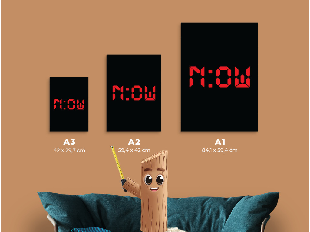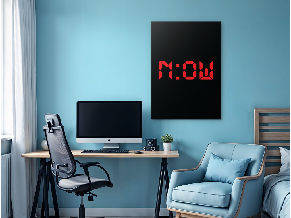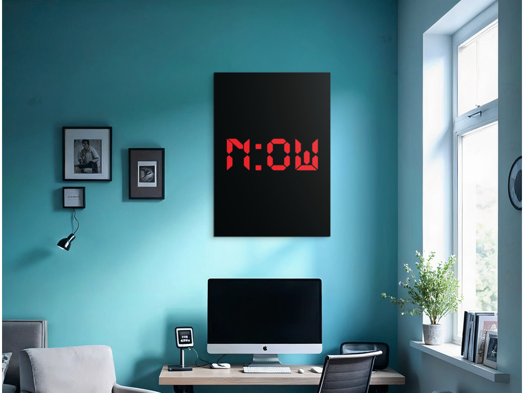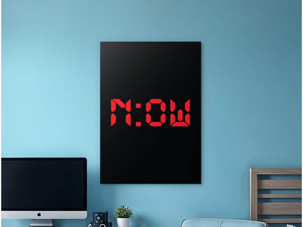 Moderný motivačný obraz s nápisom „N:OW“ (Teraz) v štýle digitálneho času symbolizuje silu prítomného okamihu a potrebu konať bez odkladania. Červené digitálne písmo na čiernom podklade vytvára výrazný kontrast a dodáva dizajnu dynamický, energický charakter. V ľuďoch posilňuje rozhodnosť, sústredenie a uvedomenie si, že najlepší čas začať je práve teraz. Vďaka kvalitnej UV tlači vyniknú intenzívne farby a ostré línie, pričom obraz sa skvelo hodí do modernej kancelárie, pracovne alebo minimalistického interiéru.