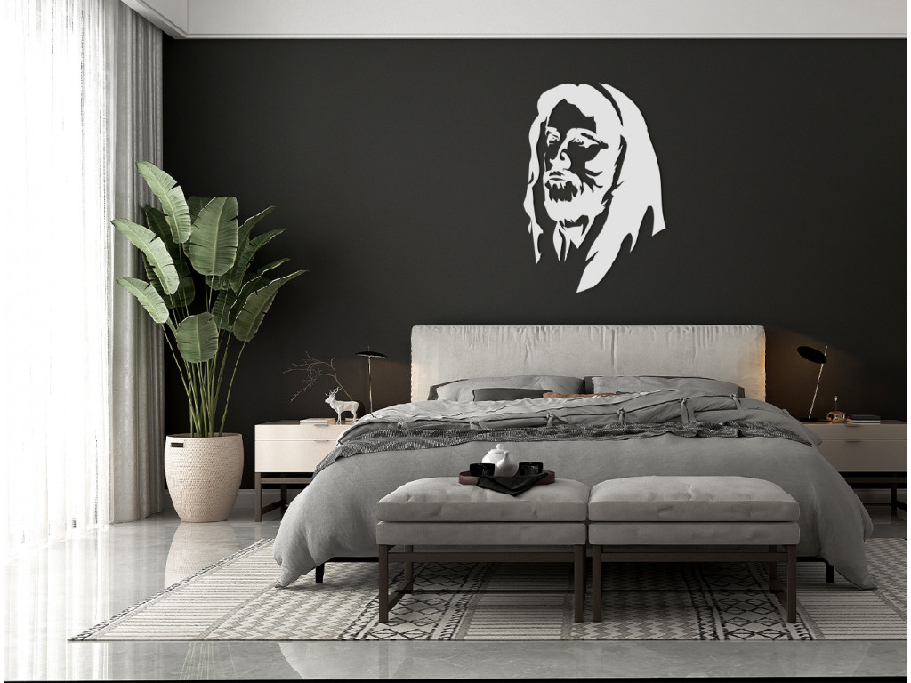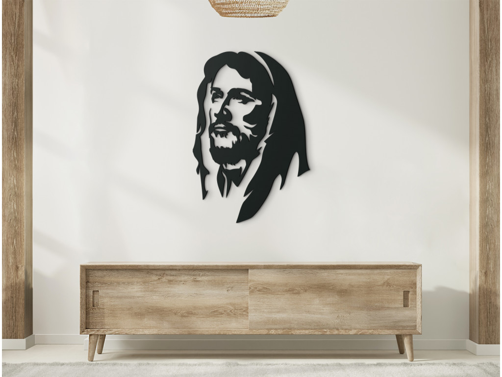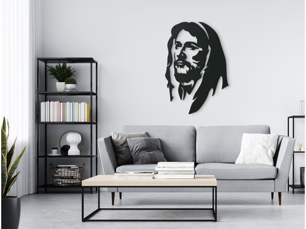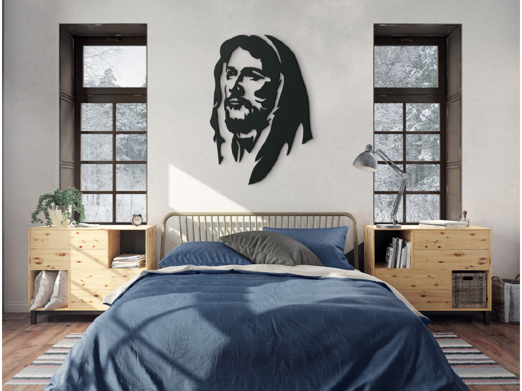 Moderná nálepka na stenu Ježiš z Nazaretu zapadne do každého moderného interiéru. Pohľad Ježiša vytvorí v miestnosti očarujúcu atmosféru. Zavesiť ho môžete nad komodu, posteľ či gauč.