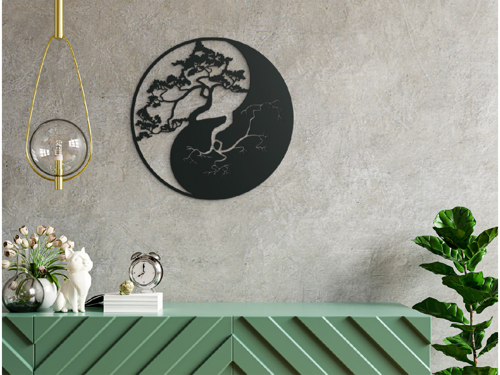Vyrezávaný obraz vyobrazuje časové úseky v tvare Jin a jang. Obraz je vyrobený v modernom štýle, takže sa bude hodiť do klasického aj moderného interiéru. V pravej priesvitnej polovici sa nachádza koruna stromu, zatiaľ čo v pravej plnej polovici sú vyobrazené jeho korene.