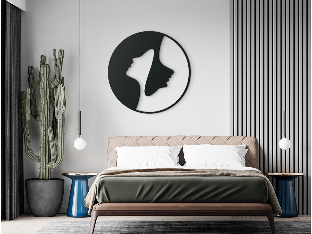 Vyrezávaný obraz Jin a jang vyobrazuje dve tváre jednu bielu a druhú čiernu. Obraz je vyrobený v modernom štýle, takže sa bude hodiť do klasického aj moderného interiéru. Vyrezávaný obraz Jin a jang bude doplnkom, ktorý oceníte v kancelárii, obývačke aj spálni.