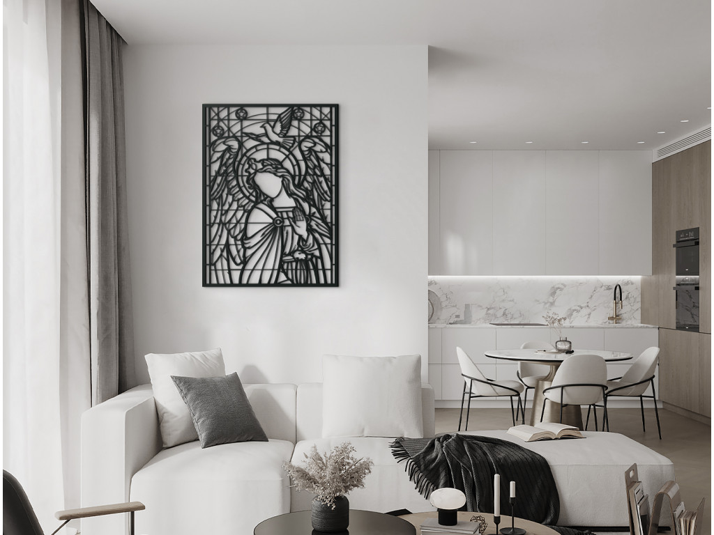 Anjeli patria medzi obľúbené nebeské bytosti. Tento bude pre váš interiér obohatením. Strážny anjel bude symbolom ochrany v každej miestnosti. Drevený obraz v modernom prevedení je vhodný na stenu do spálne, obývačky aj chodby.
