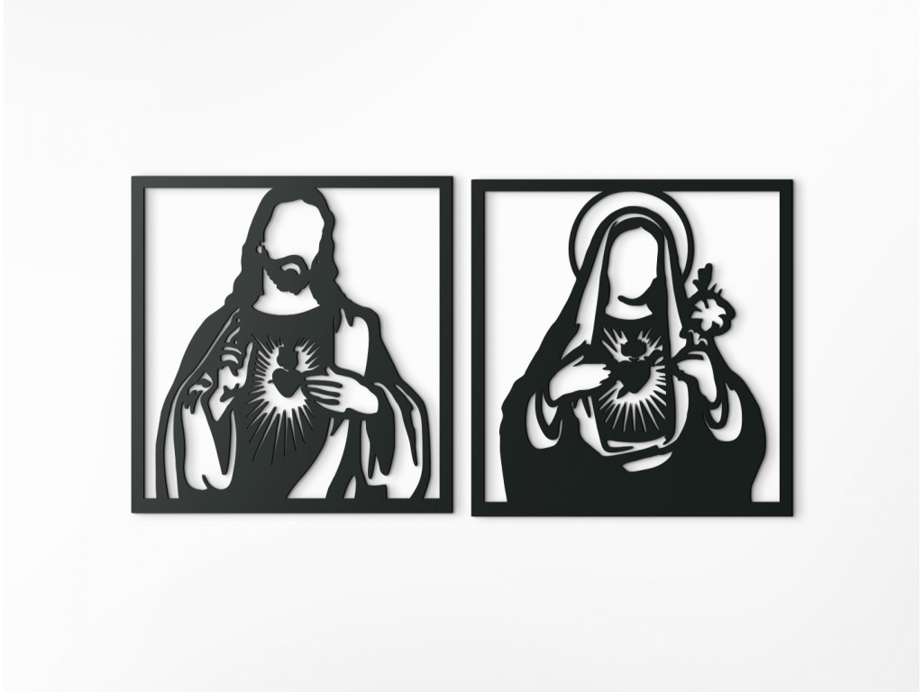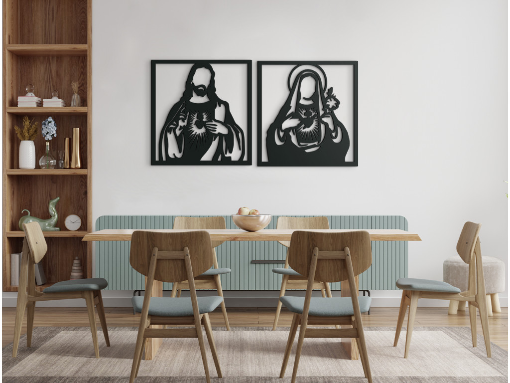 Božské Srdce Ježišovo a Srdce Panny Márie patrí medzi obľúbené výjavy do moderných aj klasických interiérov. Dekorácia je vhodná najmä ako darček pre rodičov či starých rodičov. Obraz je výnimočný pre absentujúce tváre.