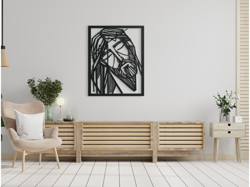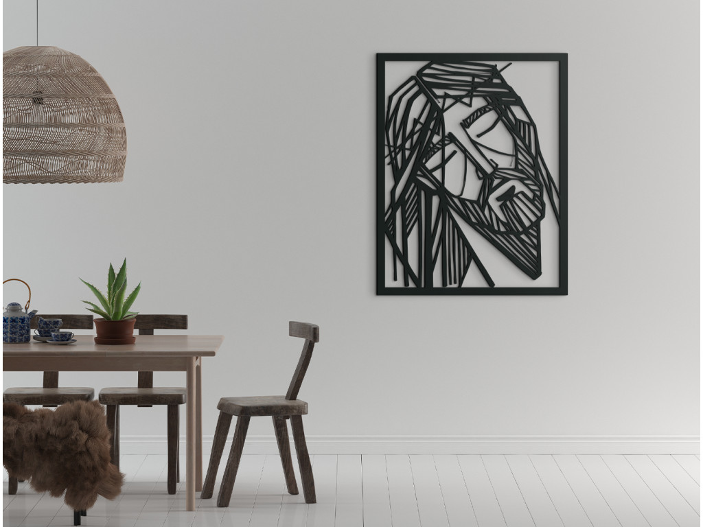 Obraz Ježiša s tŕňovou korunou bude v interiéri stredobodom pozornosti. Drevený obraz Ježiša Krista v modernom prevedení je vhodný na stenu do spálne, obývačky aj chodby. Vyobrazený Ježiš hľadiaci do zeme vnesie do interiéru pokojnú atmosféru.