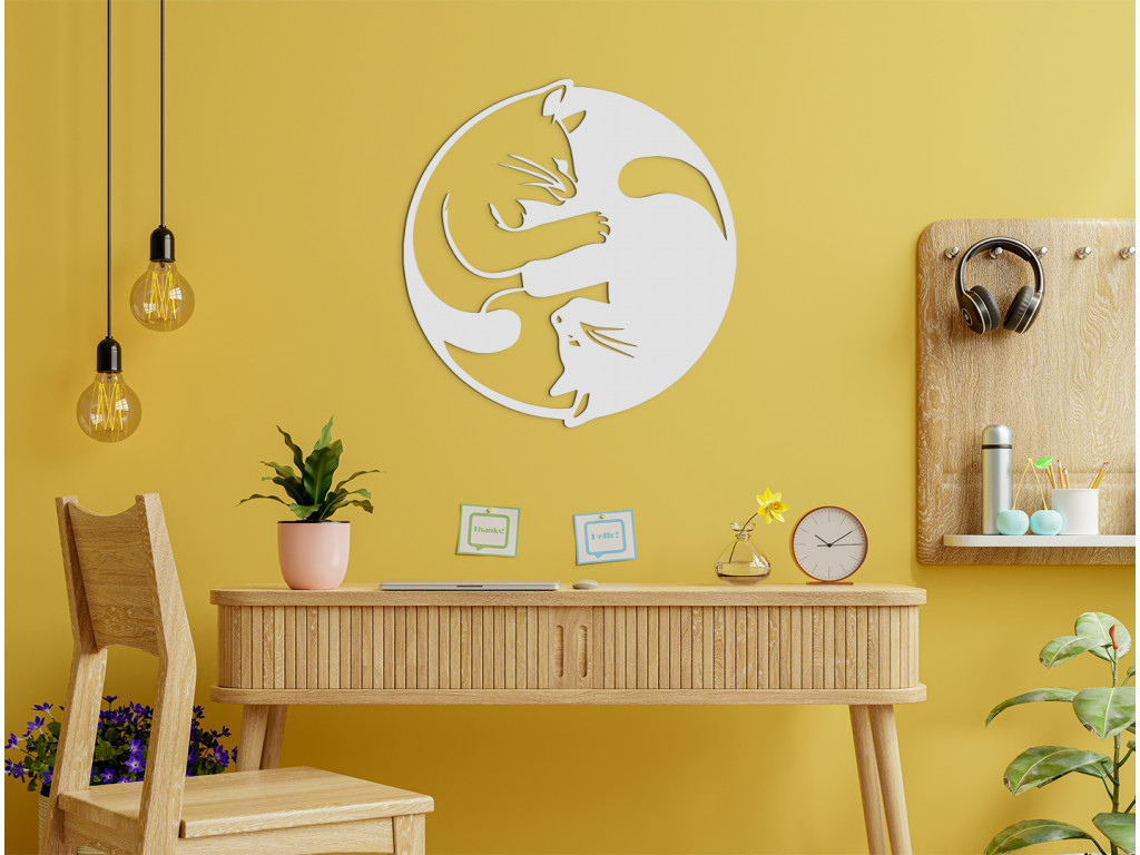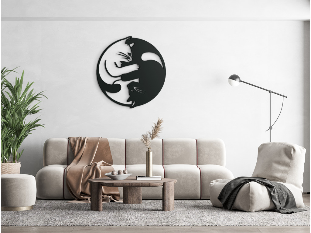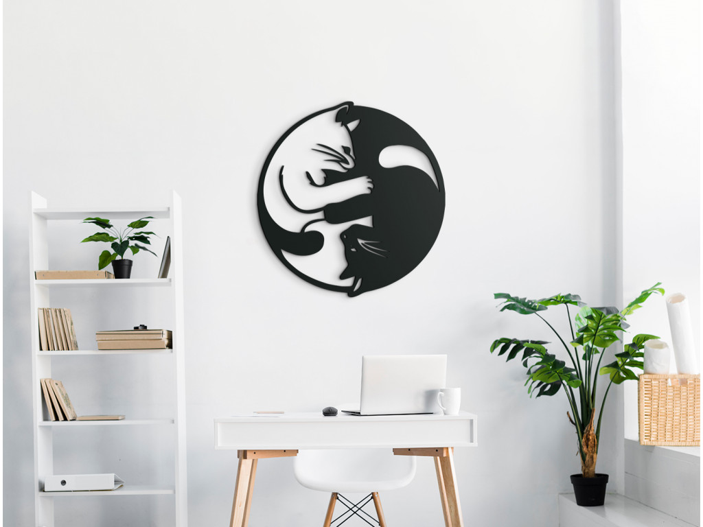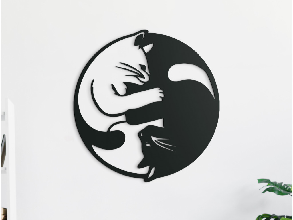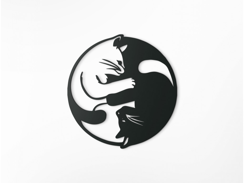 Vyrezávaný obraz vyobrazuje časové úseky v tvare Jin a jang. Obraz je vyrobený v modernom štýle, takže sa bude hodiť do klasického aj moderného interiéru. V pravej priesvitnej polovici sa nachádza biela mačka, zatiaľ čo v pravej plnej polovici je vyobrazená čierna mačka. Sú vyobrazené v objatí, čo nálepke dodáva na originálnosti.