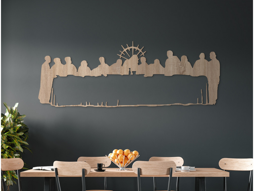 Starostlivo vyrezávaný obraz zachytáva scénu, kde Ježiš a jeho dvanásti apoštoli zdieľajú svoje posledné jedlo pred jeho ukrižovaním. Potešte seba alebo vašich blízkych unikátnym obrazom.