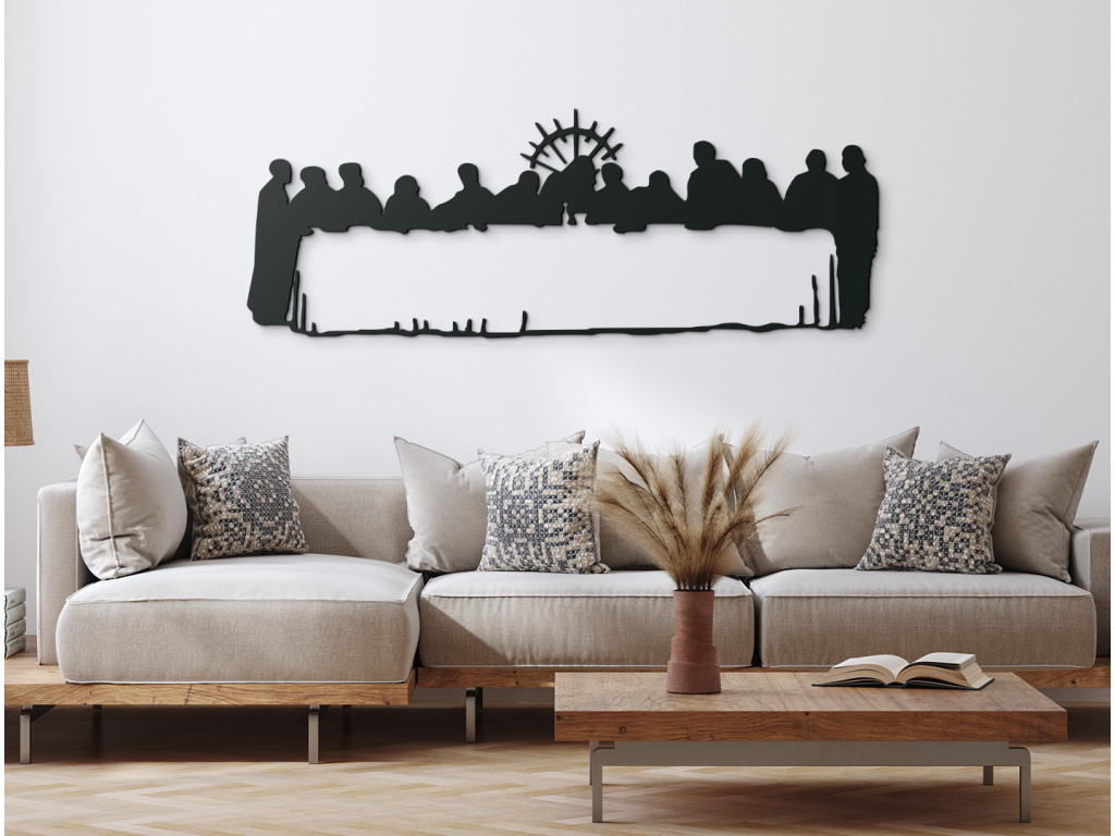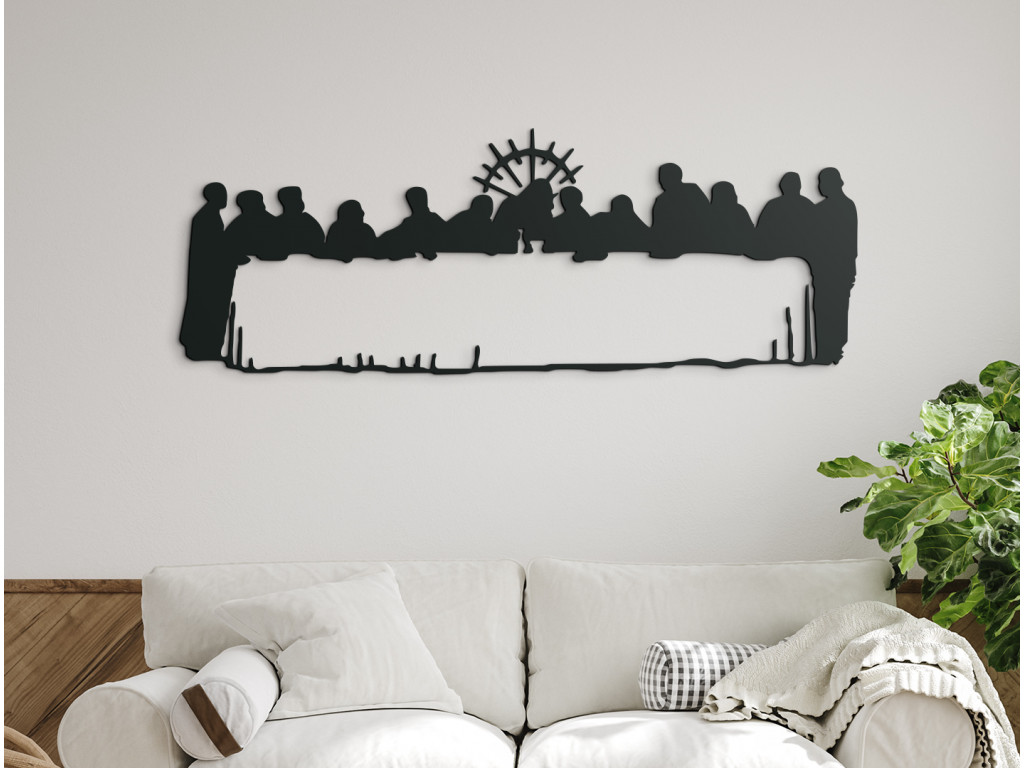 Obraz Poslednej večere zachytáva historickú scénu Ježiša a jeho apoštolov pri Poslednej večeri. Tento historický moment má v kresťanstve veľký význam, keďže zachytáva posledné momenty Ježiša pred jeho ukrižovaním. Vďaka jeho šírke je obraz vhodný pre umiestnenie v jedálni, alebo obývačke nad gaučom.